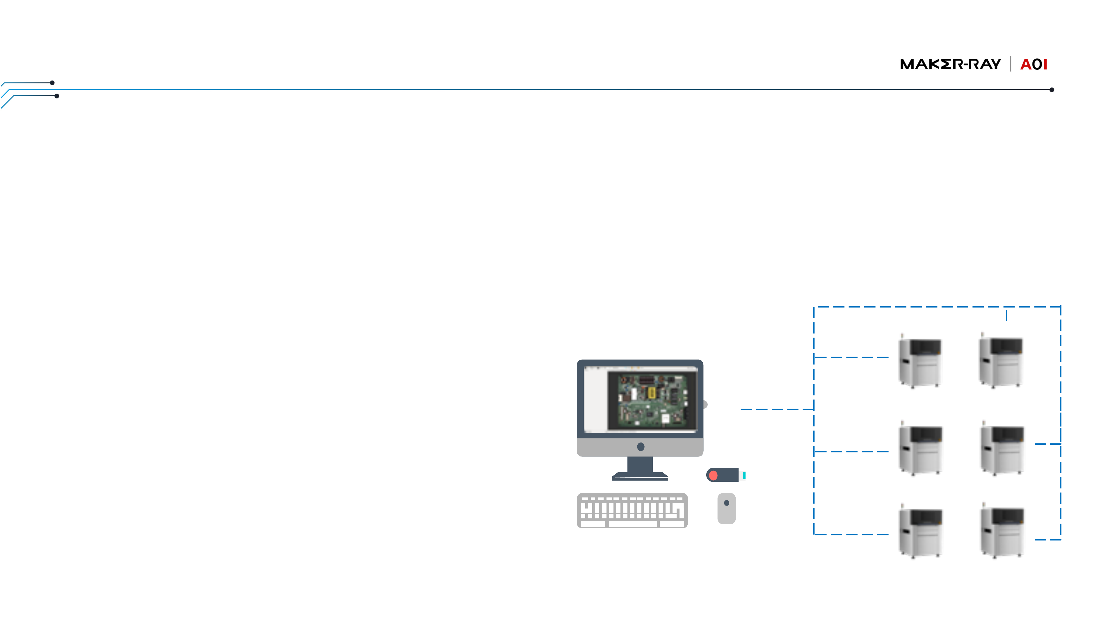 多机互联,⾯向⼯业4.0 • 设备集中式管理:最多可1⼈管控4台机器 • ⽀持⽹络版SPC:1台服务器,可查看1个⻋间所有SPI的SPC数据 • ⽀持指纹识别软硬件模块:加强操作员与⼯程师的分级管理 • 多机互联为实现⼯业4.0提供数据互联以及智能制造 AIS63XSeries - SPI|技术优势