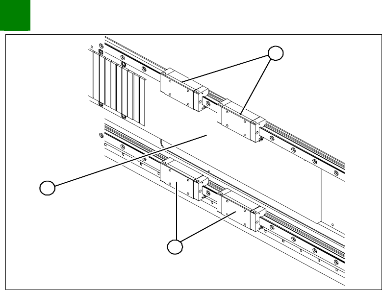 3 Serv ice Gan tri es SIPLACE HF Replacing the Gantry [030 06781-xx ] 3-8 0019 4307- 01 Iss ue 12/2 003 Copyr igh t © 2 003 S ie mens D em atic SD EA 1 1 3 2 Carefully r ub the following cont act surfaces wi th a dress…