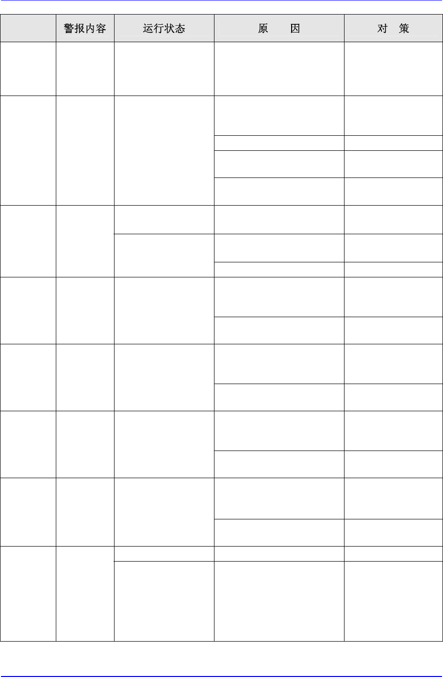 在这种情况下按照下表对相应报警码采取措施。
