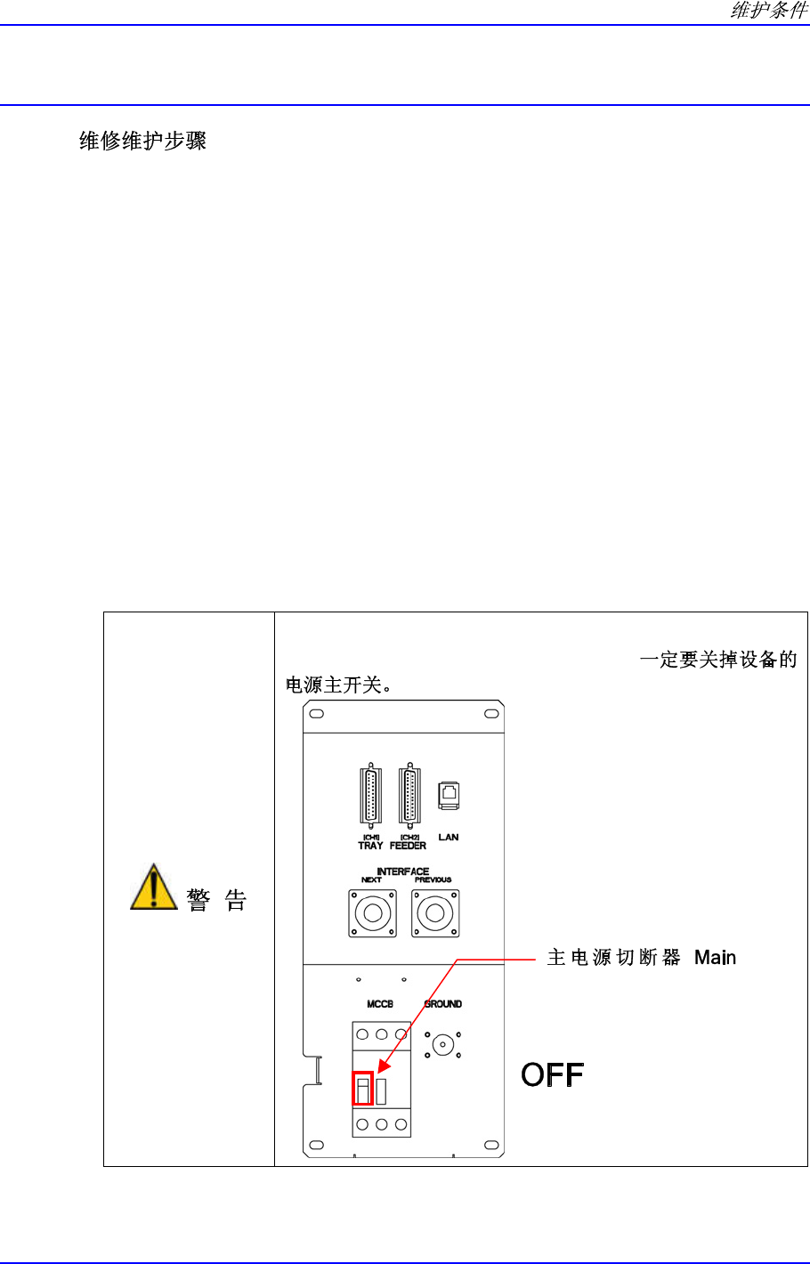 3. 维护作业开始前一定要关闭电源开关然后合上主电源开关。