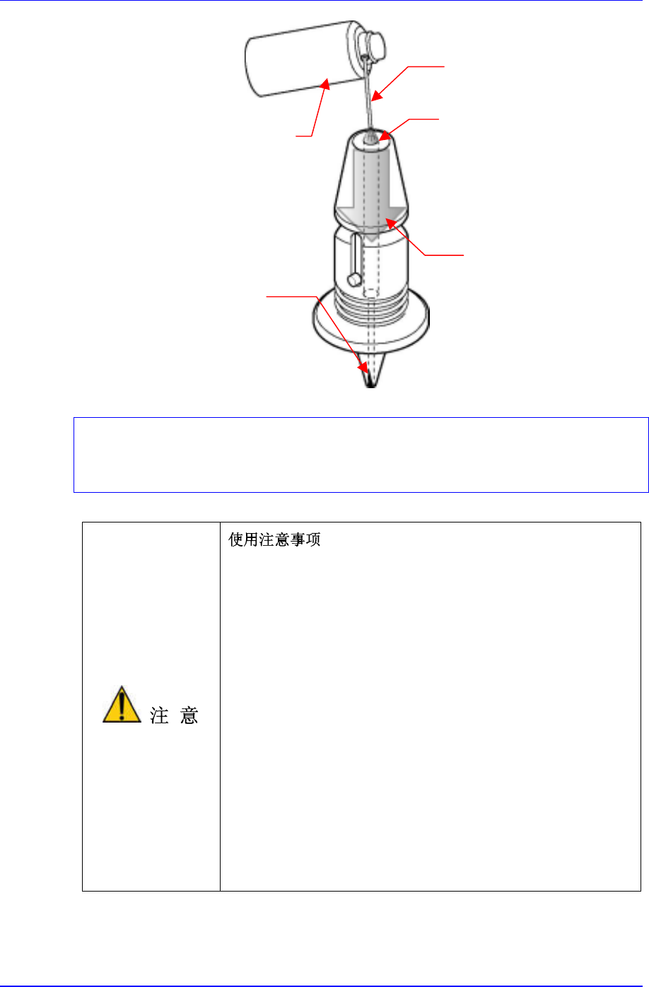 用我公司推荐的洗液装在喷雾形的里向 Nozzle Hole 里喷雾。