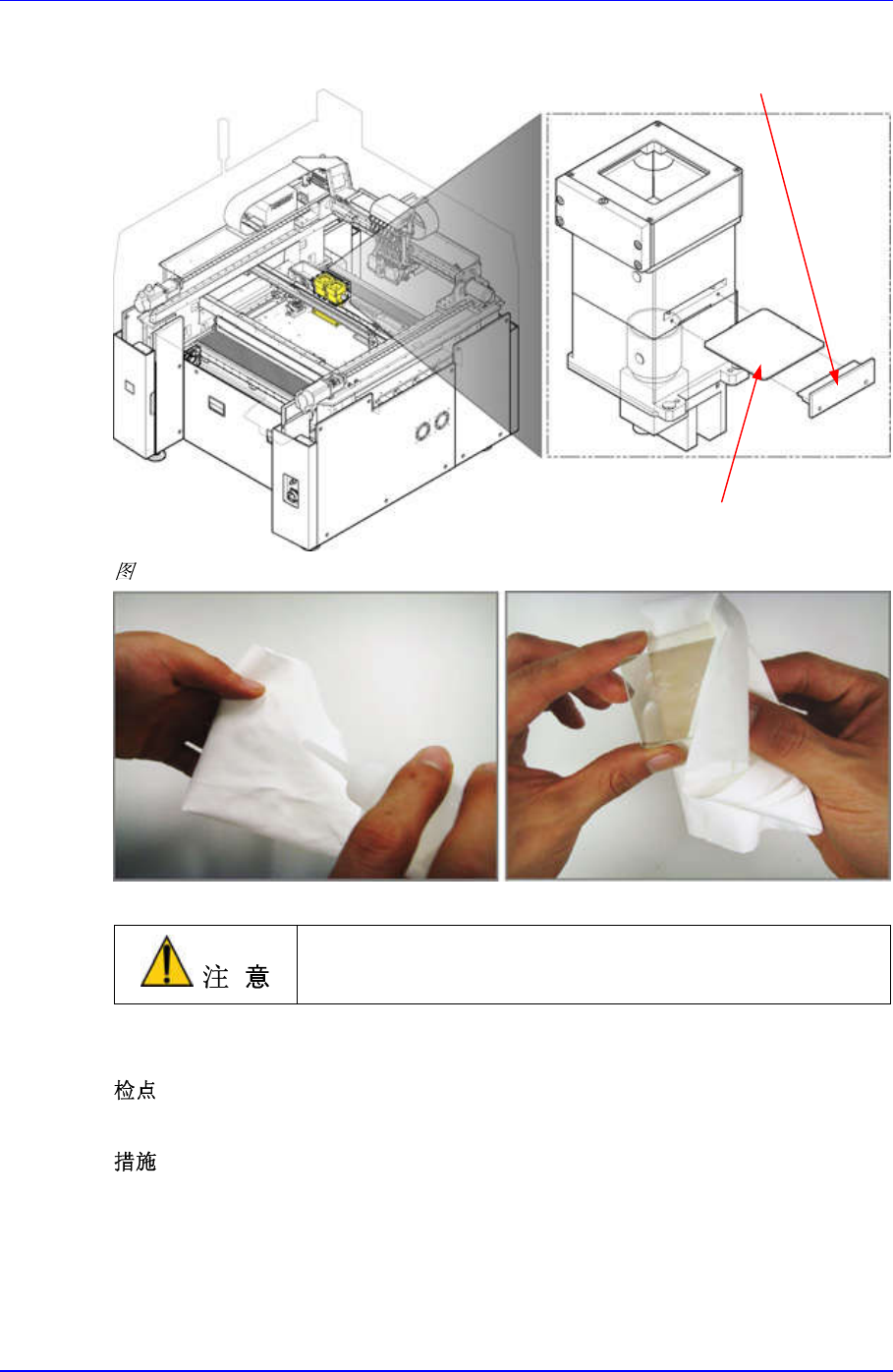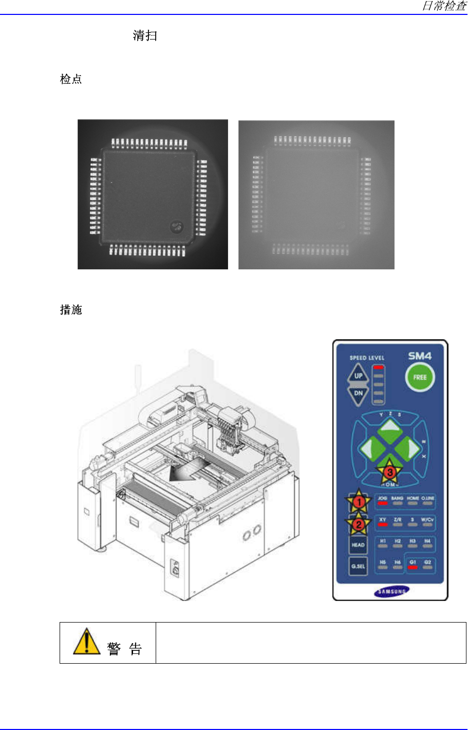 2-1 1 2.3. S tage Camera 2.3.1. Cover Glass 请肉眼确认 Stage Camera 盖是否粘有污 质。 它们会在 Camera 识别元件时造成错 误。 < 部件正常识别状态 > < 被灰尘或污质污染状态 > 请运行设备,每天确认 Stage Camera 的识别状态。 操作示教盒, Head Ass embly 最大限度向前移动。 单击 Teaching Bo…