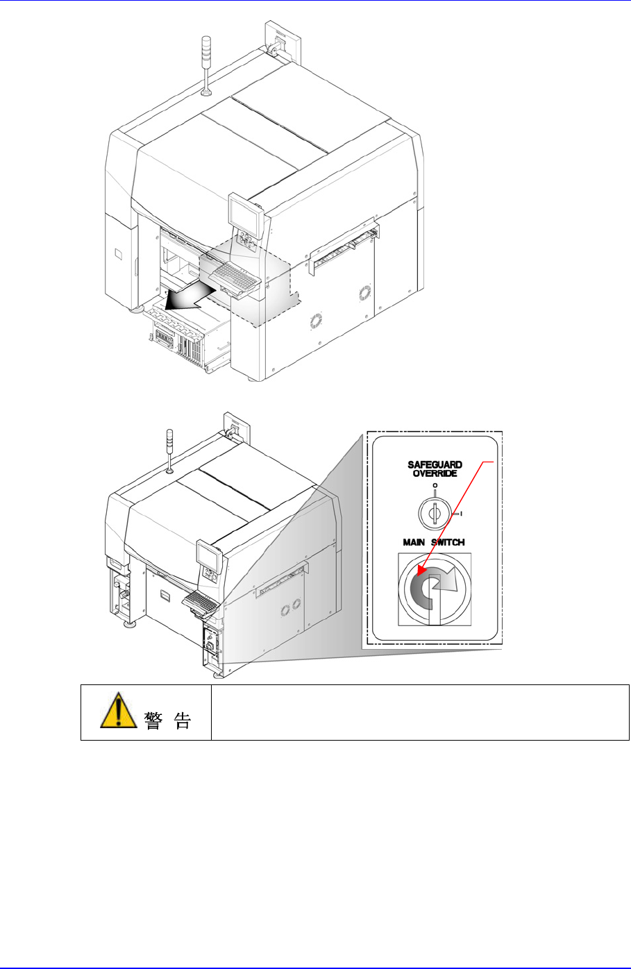 分离Control Rack的Top Cover后,关闭设备前面的主开关。