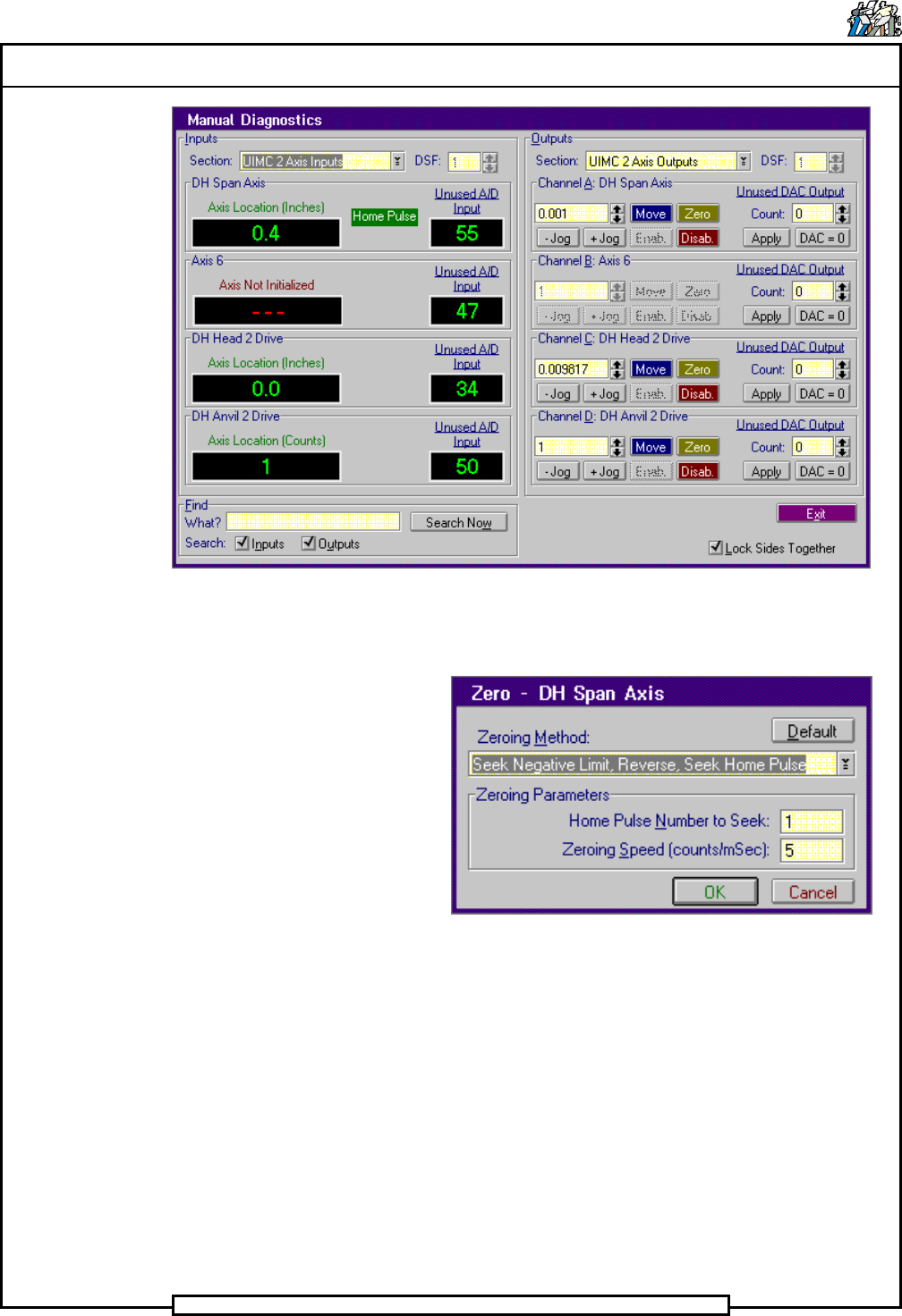 Page 34 TECHNICAL PUBLICATIONS T46230812 Rev . D DH Positioning System Assembly , P/T This Document Supports Assembly 46230812 14. Select Channel A: DH Span Axis>Zero The Zero - DH Span Axis dialog screen is displayed…
