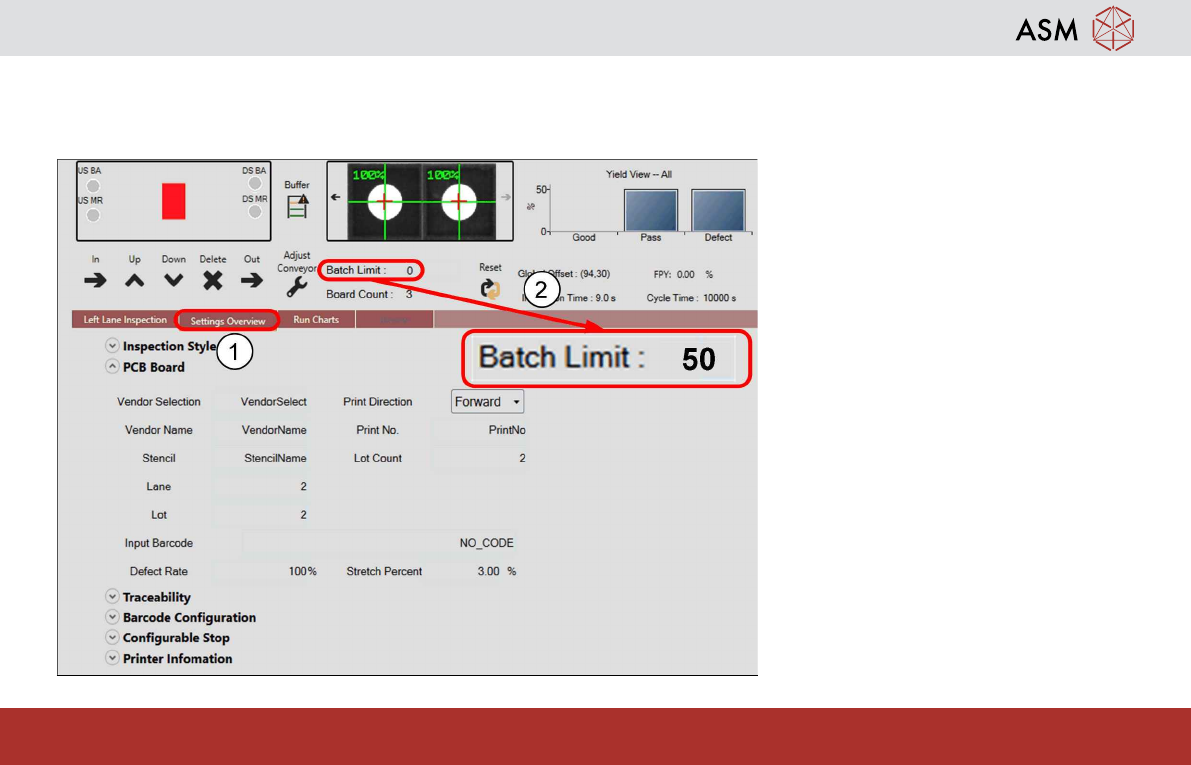 Operation - Load Recipe 26 www.asm-smt.com Production Batch Setting Batch Limit function to prevent over production or under production. 1. Click Production 2. Enter production batch size, pro- duction stop when reach ba…