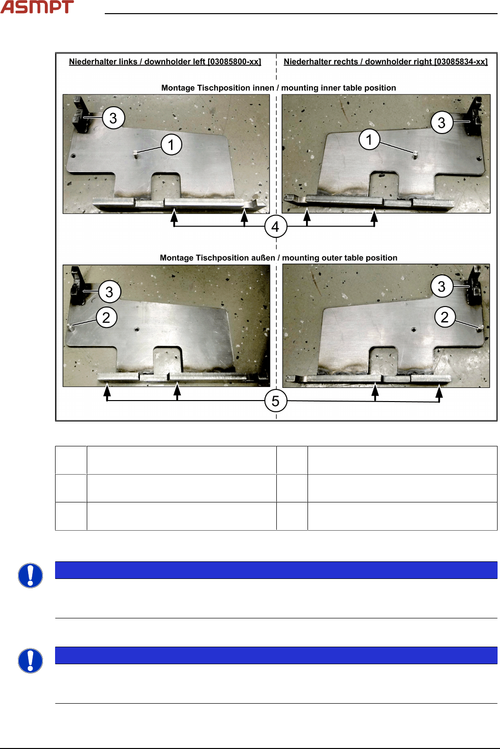 therefore the assembly position of the downholder depends on the table position (inside/outside).