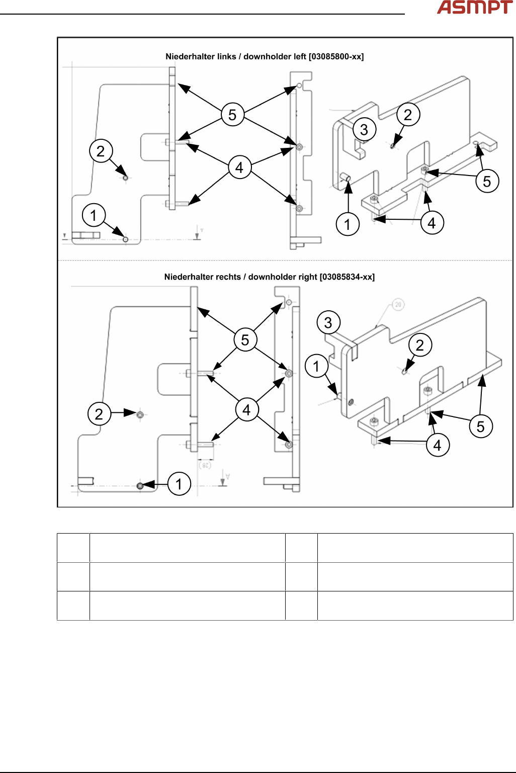 aid(3) and the downholders are fixed with two new screws each to the position(5), together with the