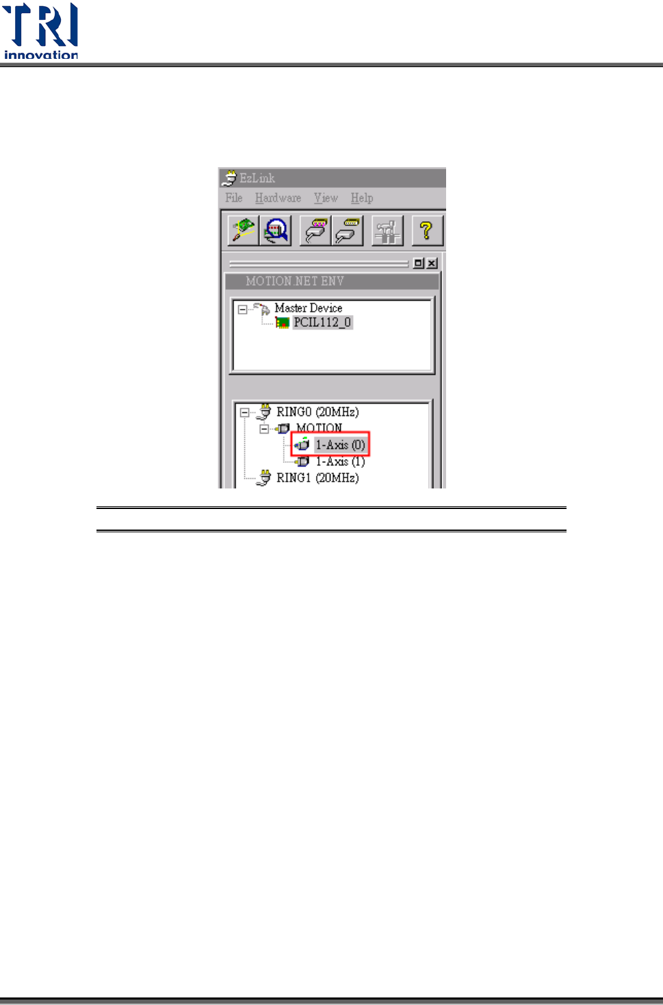 Test Research Inc. 94 TR 7700 User Guide -- Ha rdw are 7) 測試 HOME 的動作 A. 首先選擇一軸進行測試,以下圖為例,選擇 X 軸進行測試。 圖 151 : EzLink - 選擇一軸進行 測試