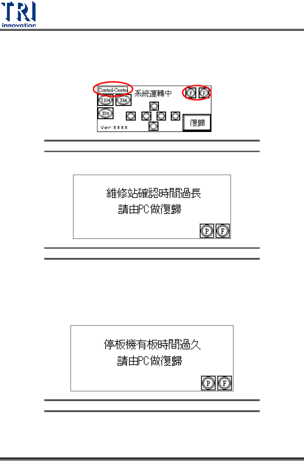 使用 Control Center 功能時可能會出現的警報,停板機有板時間過久,須由 PC 端進行