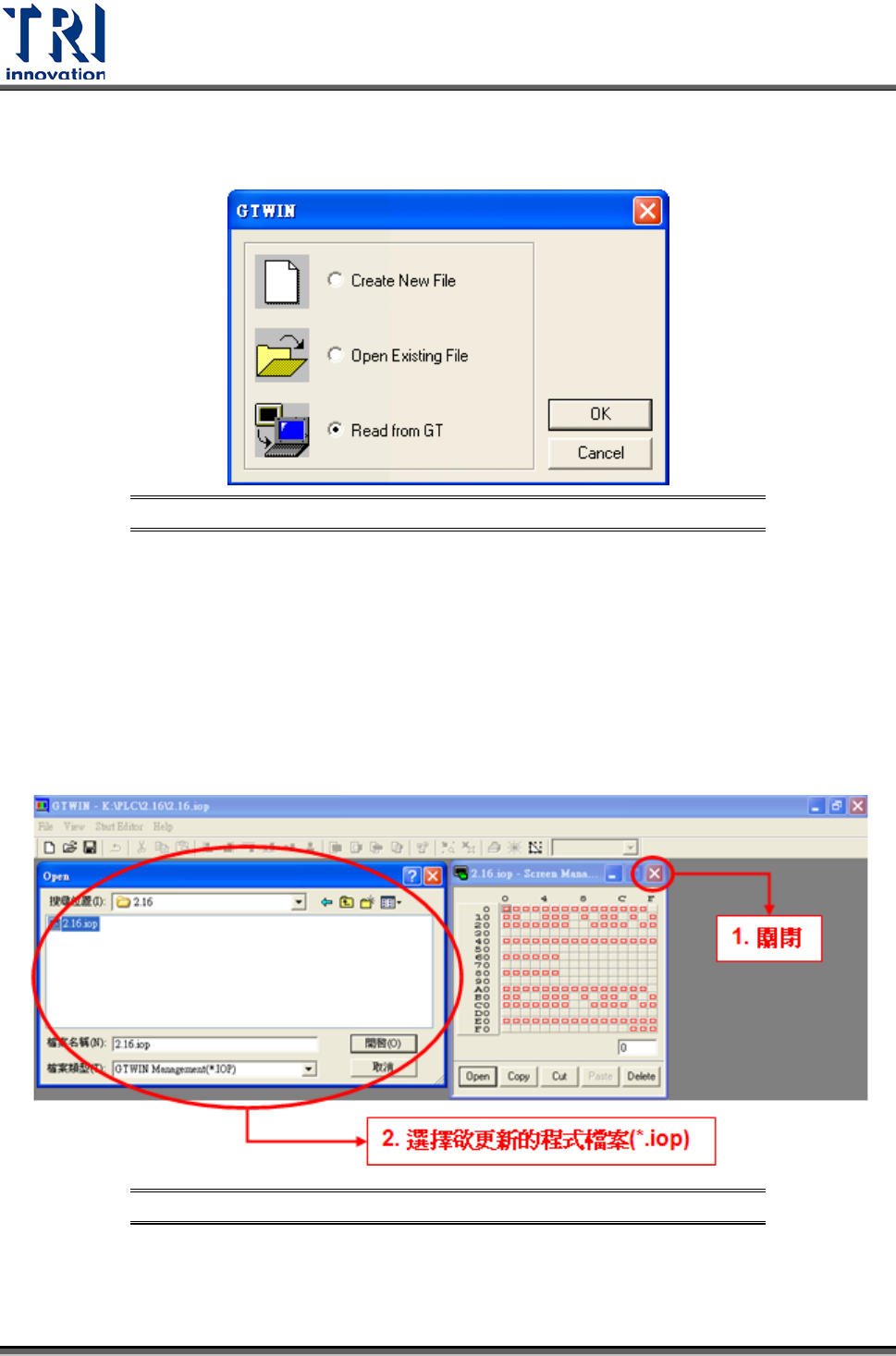 3) 進入 GTWIN 軟體程式,如下圖所示,點選[Read from GT](讀取人機介面的資料)