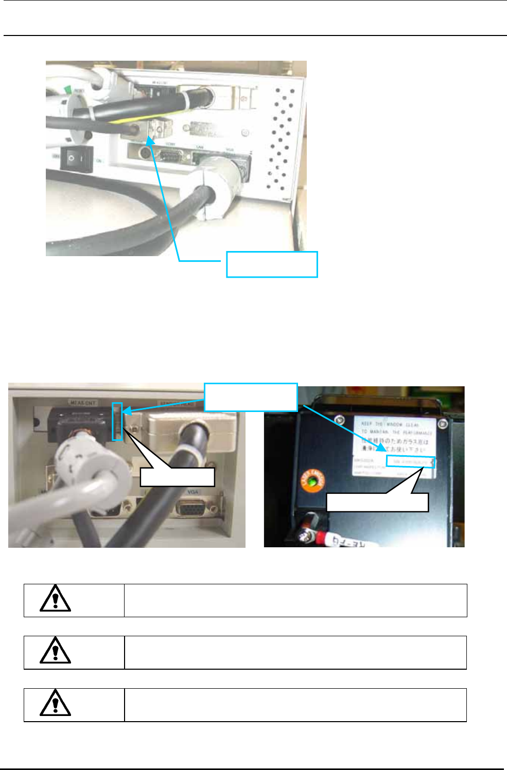 Rev.1.00 安装要领书 连 接 到 COM2 连接各电缆线。 ※ 请检查一下 E96747290A0 共面装置的计算机背面右 上方所标的出厂编号(插塞和插塞之间贴着 标签)与位于传感器前面的出厂编号是否相同。 ********** 出厂编号 SN ********** 危险 为了防止以外的起动造成事故,请关掉电源之后再进行操作。 注意 请确认工厂的供给电流容量是否充分。 注意 请绝对不要连接其他的电压规格。 43