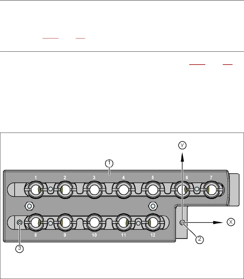 Fig. 6.1 - 8 Magasin de pipettes - Numérotation de garages, marques d'identification de la position et la position rela-