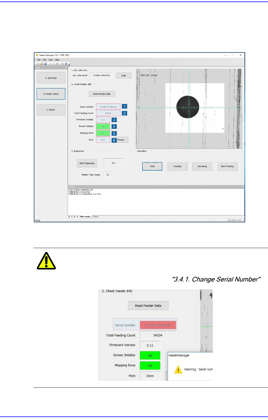 displayed in the <Mapping Done> caption box, initialize the feeder sensor referring to