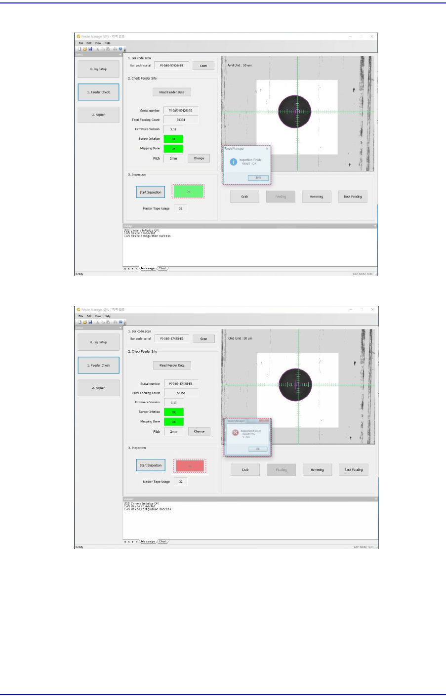feeder. Starting the inspection will display the <Start Inspection> button as the