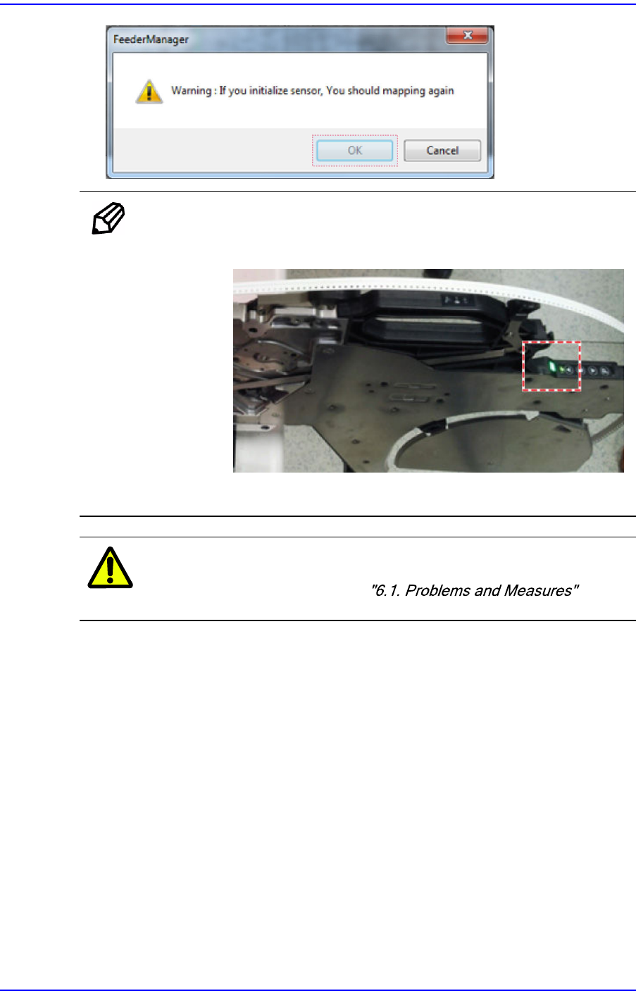 components were reassembled or replaced, initialize the tape feeder sensor according to