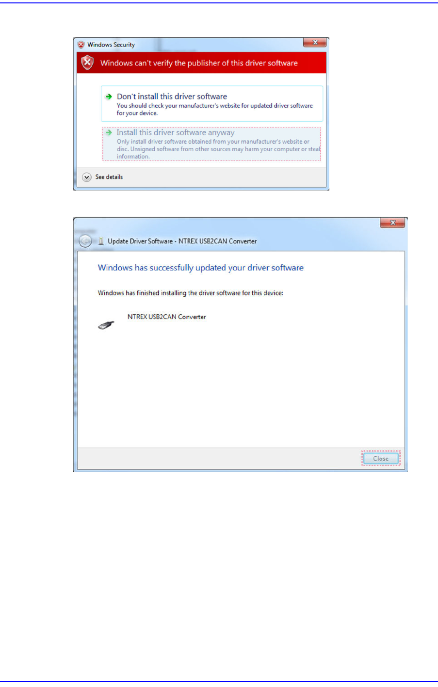 18. Click the <Close> button to finish the [NTREX USB2CAN Converter] installation.