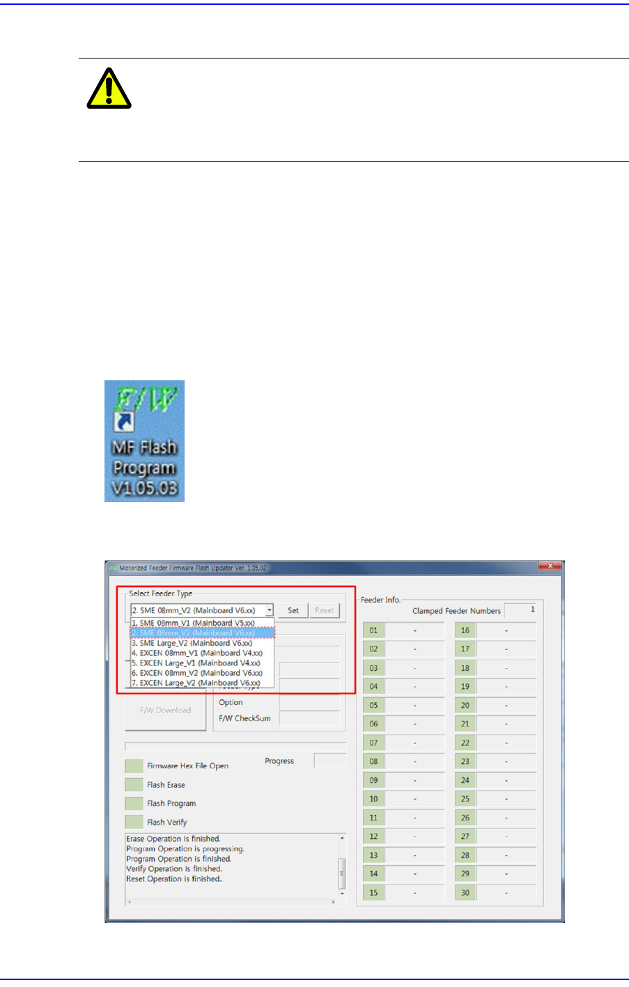 Refers to the icon to execute the tape feeder firmware upgrade program.