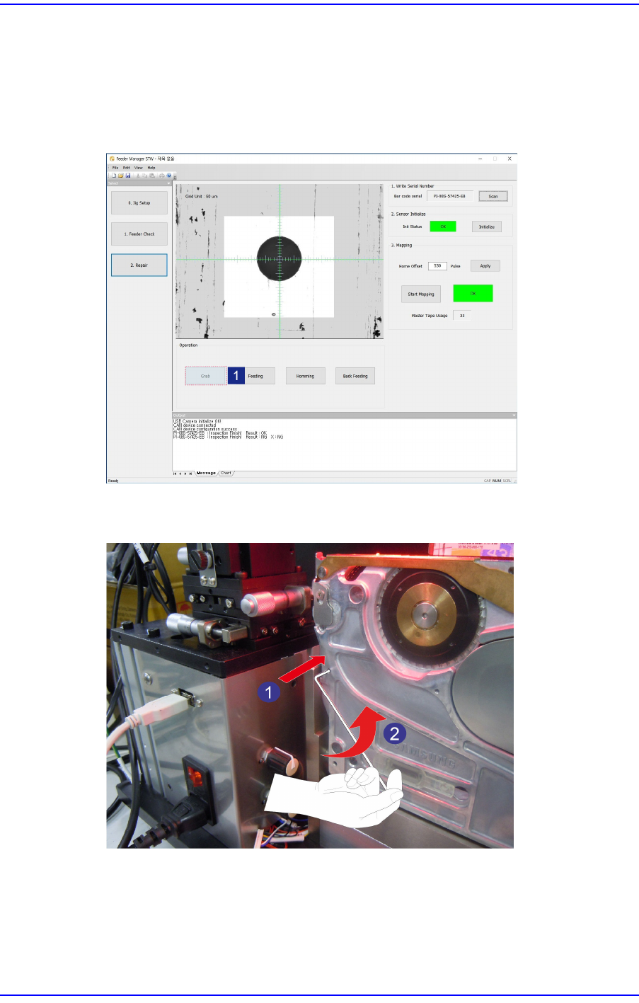1. After inserting the master tape into the tape feeder, run the calibration jig program and