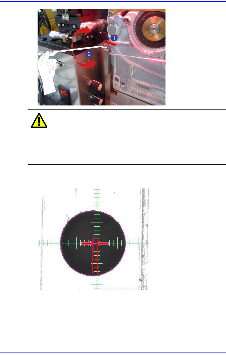 4. In the vision window, adjust the X eccentric pin so that the spacing between the master