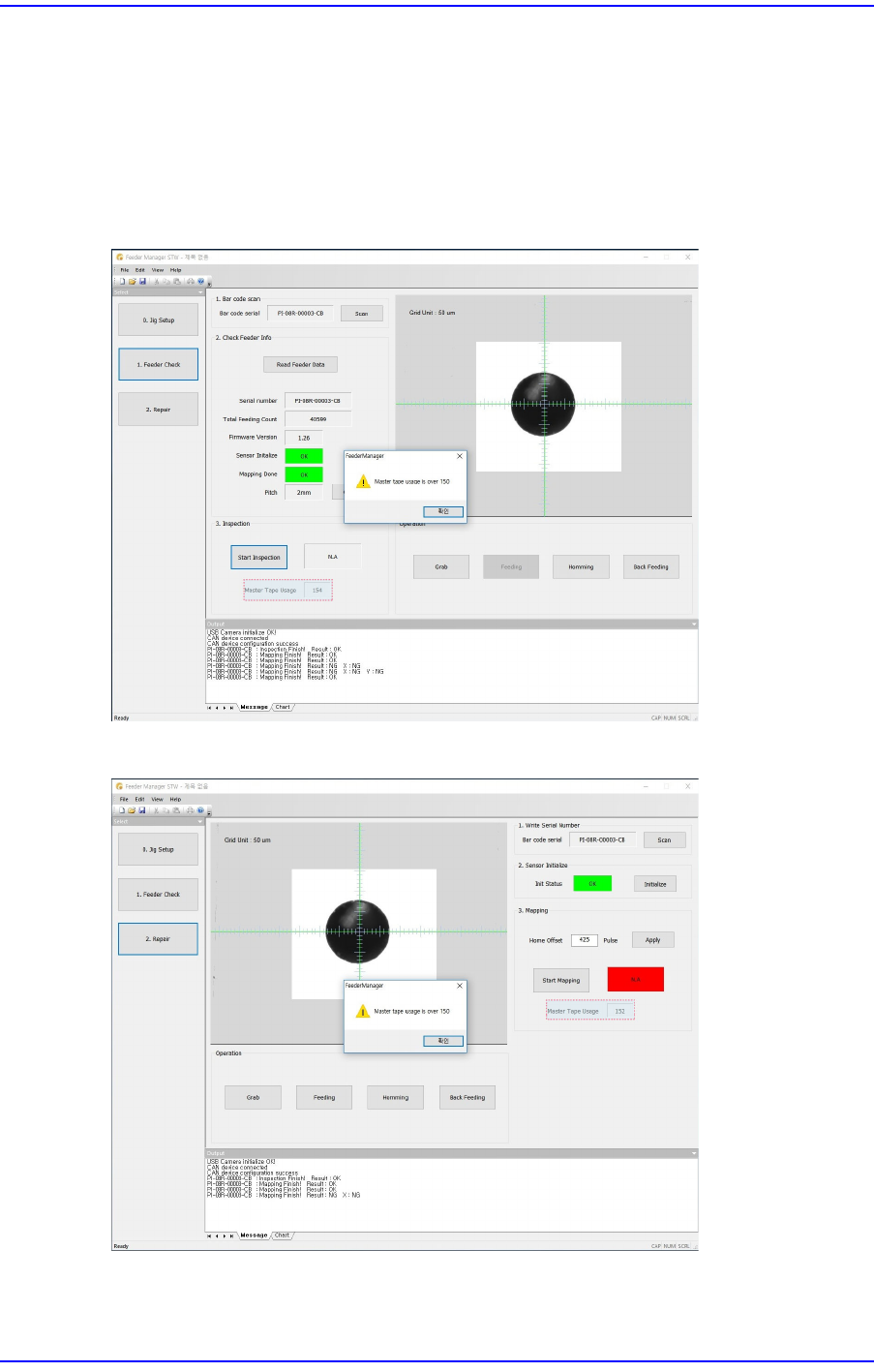 5-8 User's Guide For Tape Fe eder Calibration Jig 5.4. Master Feeder In the case of a master feeder , the reliab ility of the origin must be maintained by performing calibration regularly . If defects such as distor…