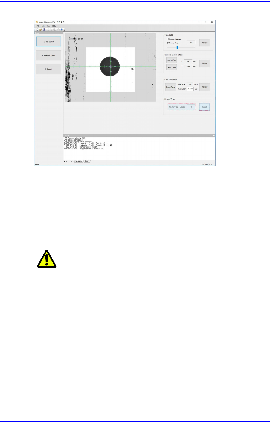 5-9 Maintenance 5.5. Master Tape U sage Management If the usage count of the maste r tape exceeds 150 times, an alarm occurs automatical ly in the calibration jig program. It is possible to check the usage count of the m…