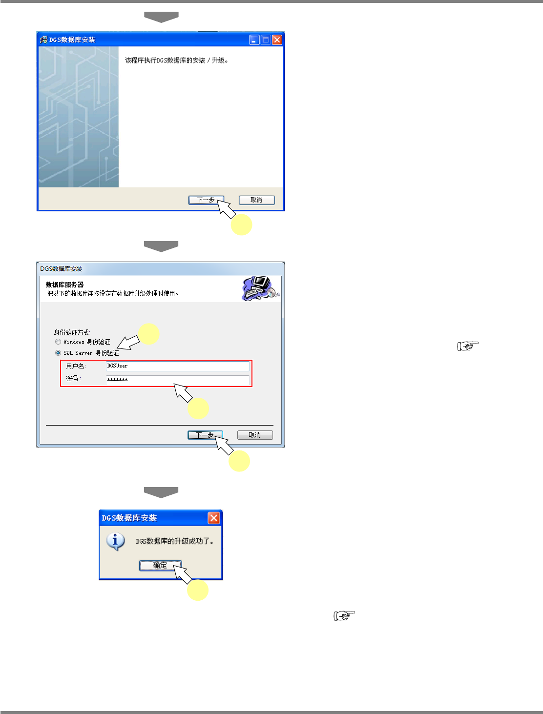 NPM-DGS 程序手册 2.2 DGS 应用程序的升级 Page 2-98 EJS9AC-MB-02P-19 2.2.4 DGS 应用程序的升级 有关 DGS 应用程序的升级,请务必在预 先安装了 DGS 应用程序的 PC 上进行。 1 在安装了 DGS 的状态下,选择与安装 完毕的设定相同的设定。 2 点击 [ 下一步 ] 。 3 点击 [ 完成 ] 。 已经下载了 LWS 编辑器时,将在之后替换到 PPD 编辑器 (LWS 模…