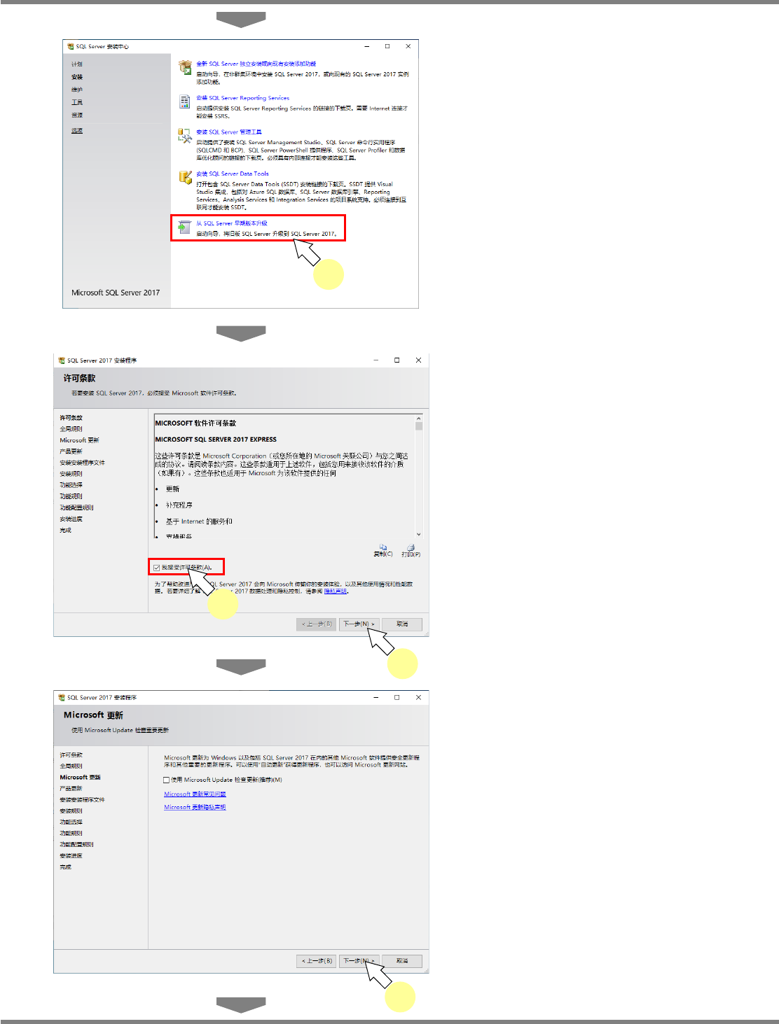 NPM-DGS 程序手册 2.2 DGS 应用程序的升级 EJS9AC-MB-02P-19 Page 2-101 3 点击 [ 从 SQL Server 早期版本升级 ] 。 4 同意许可条款后,点击 [ 下一步 ] 。 5 点击 [ 下一步 ] 。 连接了互联网时,勾选 ’ 使用 Microsoft Update 检查更新 ( 推荐 )’ 后,点击 [ 下一步 ] 。 Install020101S-1 90C00 3 Instal…