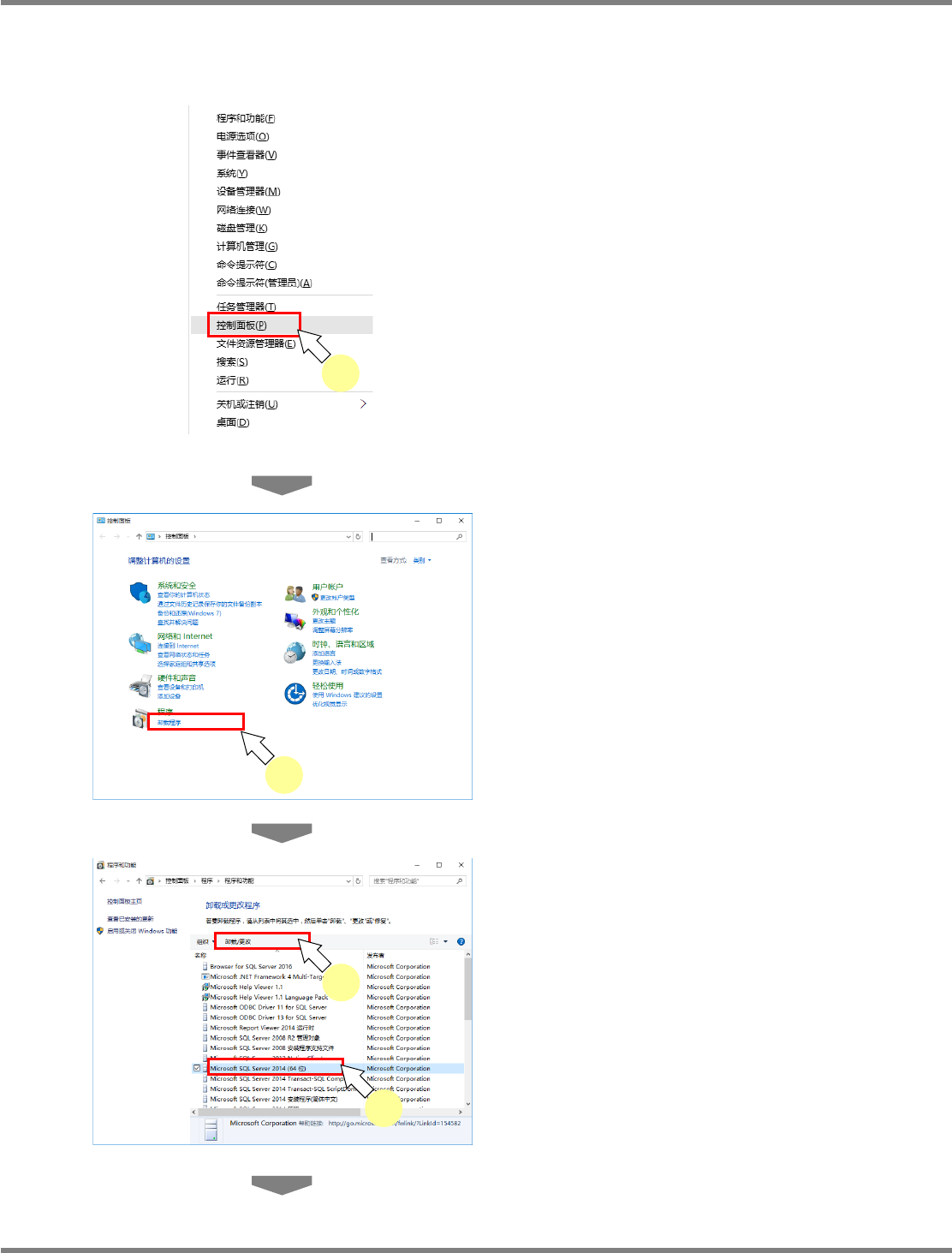 NPM-DGS 程序手册 2.2 DGS 应用程序的升级 EJS9AC-MB-02P-19 Page 2-115 2.2.7 SQL Server Management Studio Express 的卸载 SQL Server 2014 Management Studio Express 的卸载 1 在按 [Windows] 键的同时按 [X] 键, 从显 示的一览中点击 [ 控制面板 ] 。 2 点击 [ 卸载程序 ] 。 3 …