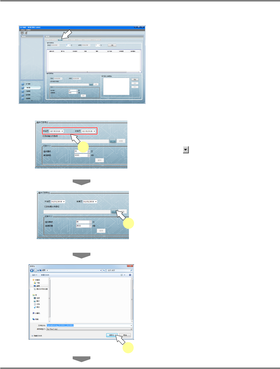 作履历的设定与收集画面。通过确认操作履历,