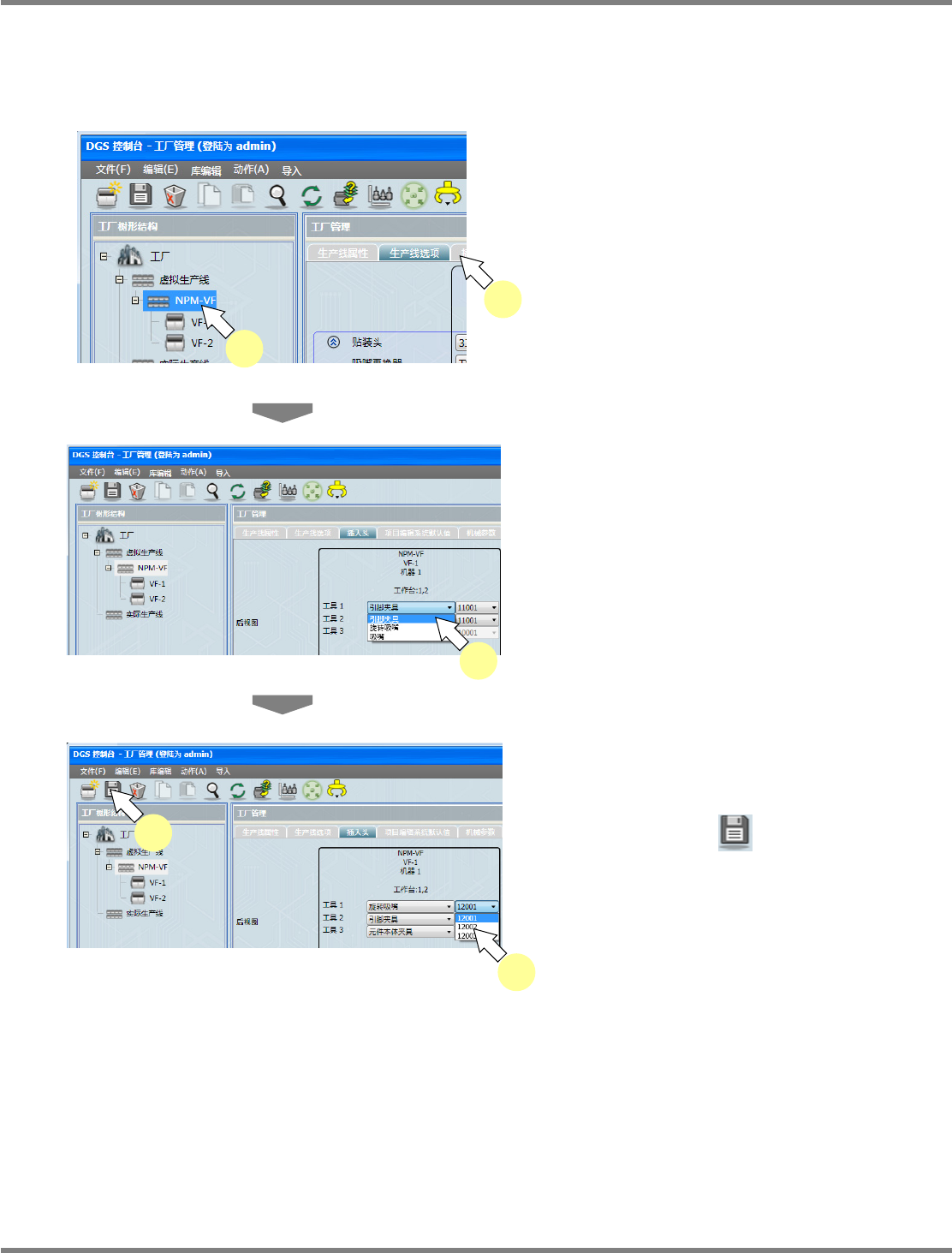 选择存在插入机的虚拟生产线后选择