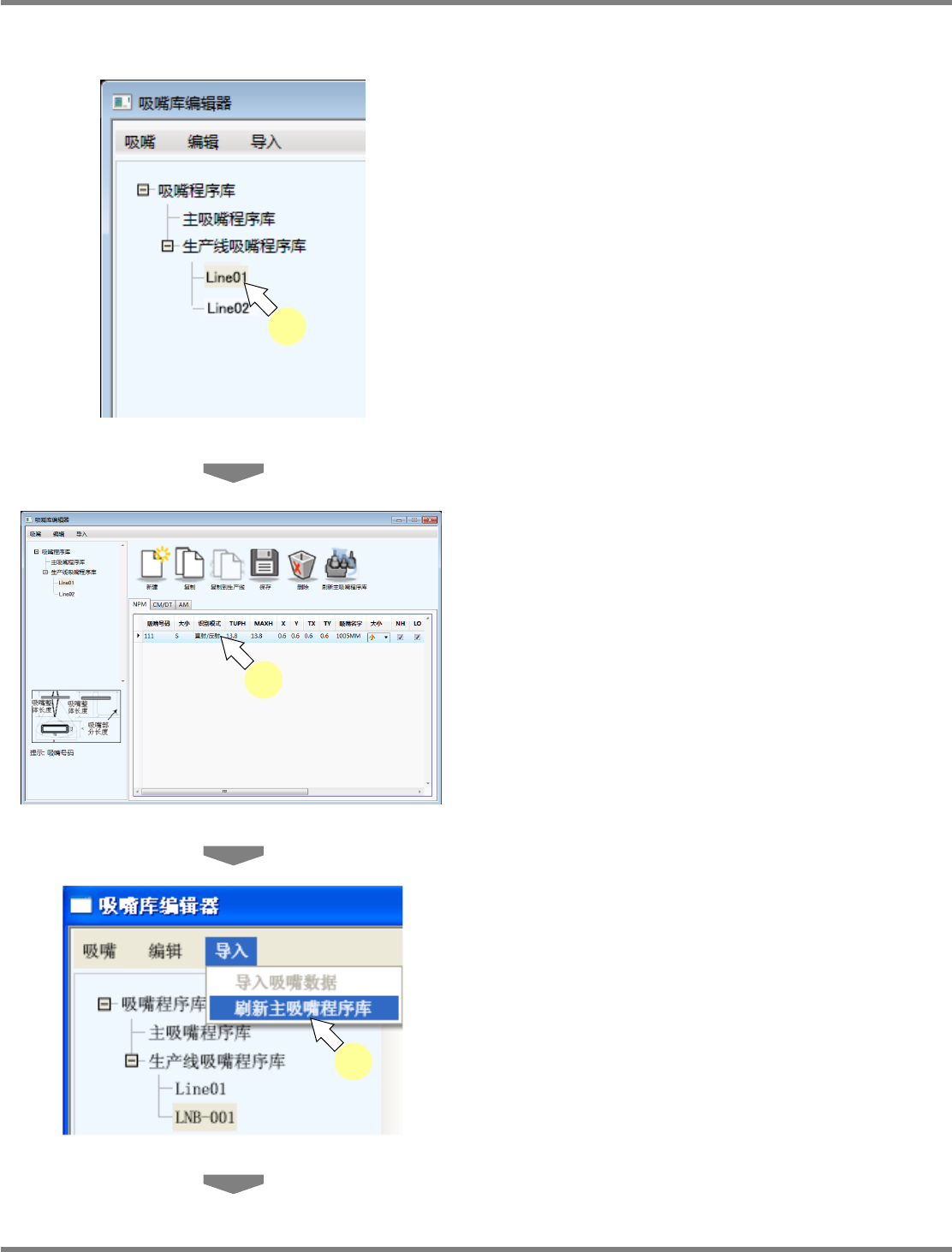 选择吸嘴程序库内的生产线吸嘴程序