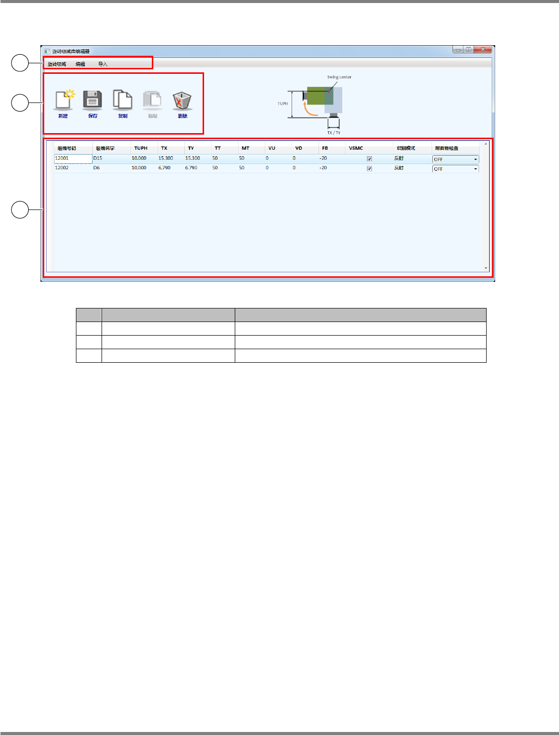 旋转吸嘴库编辑器画面的构成