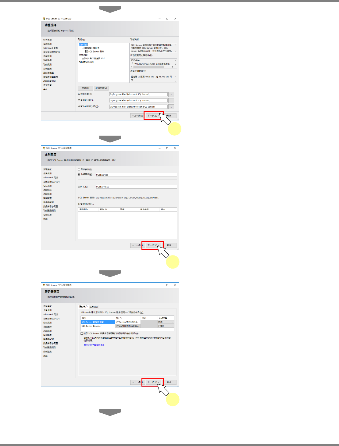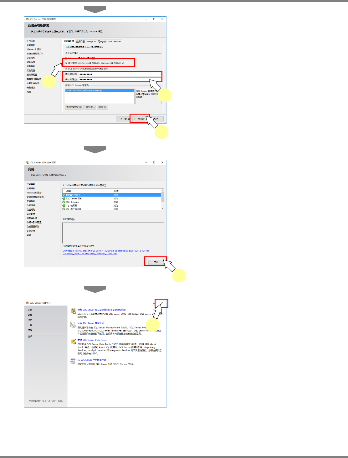 NPM-DGS 程序手册 2.1 NPM-DGS 的安装 Page 2-22 EJS9AC-MB-02P-19 11 选择 ‘ 混合模式 (SQL Server 身份验 证和 Windows 身份验证 )’ 后,输入任 意的密码。 12 点击 [ 下一步 ] 。 13 点击 [ 关闭 ] 。 14 关闭 <SQL Server 安装中心 > 画面。 Install020101S-1 55C00 12 11 11 Instal…