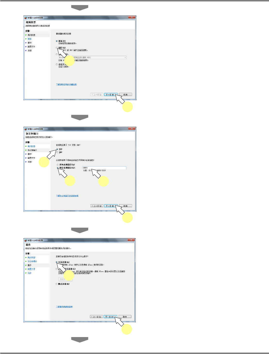 NPM-DGS 程序手册 2.1 NPM-DGS 的安装 Page 2-70 EJS9AC-MB-02P-19 5 点击左侧的 [ 高级设置 ] 。 6 点击左侧的 [ 入站规则 ] 。 7 点击右侧的 [ 新建规则 ] 。 Install020402-0 4C01 5 Install020402-0 5C01 6 Install020402-0 6C01 7