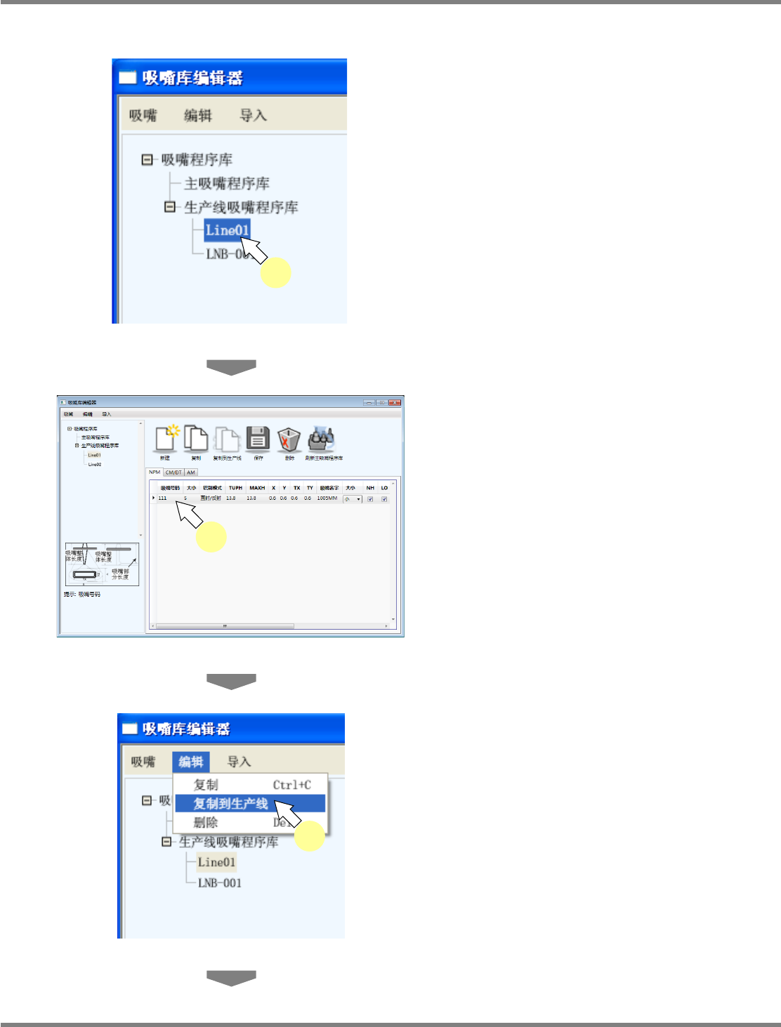 选择吸嘴程序库内的生产线吸嘴程序
