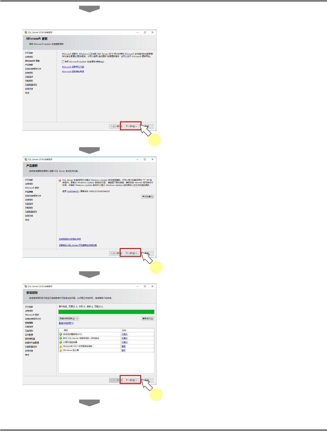NPM-DGS 程序手册 2.1 NPM-DGS 的安装 Page 2-20 EJS9AC-MB-02P-19 ( 没有连接互联网时 ) 5 点击 [ 下一步 ] 。 连接了互联网时, 勾选 ’ 使用 Microsoft Update 检查更新 ( 推荐 )’ 后点击 [ 下一步 ] 。 6 点击 [ 下一步 ] 。 只在没有连接互联网时,显示这个画 面。 ( 在连接了互联网的情形下, 不显示这个画面。 ) 7 点击 [ 下一步…