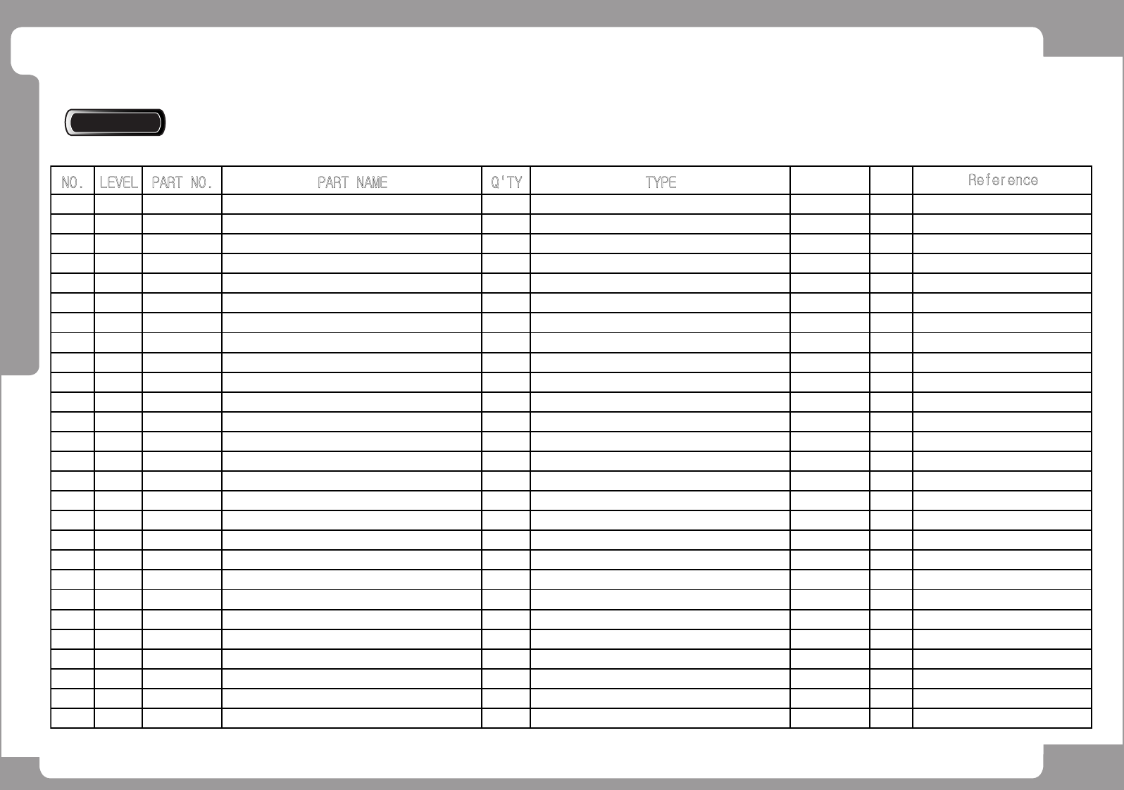 NO. LEVEL PART NO. PART NAME Q'TY TYPE Old No. Stock