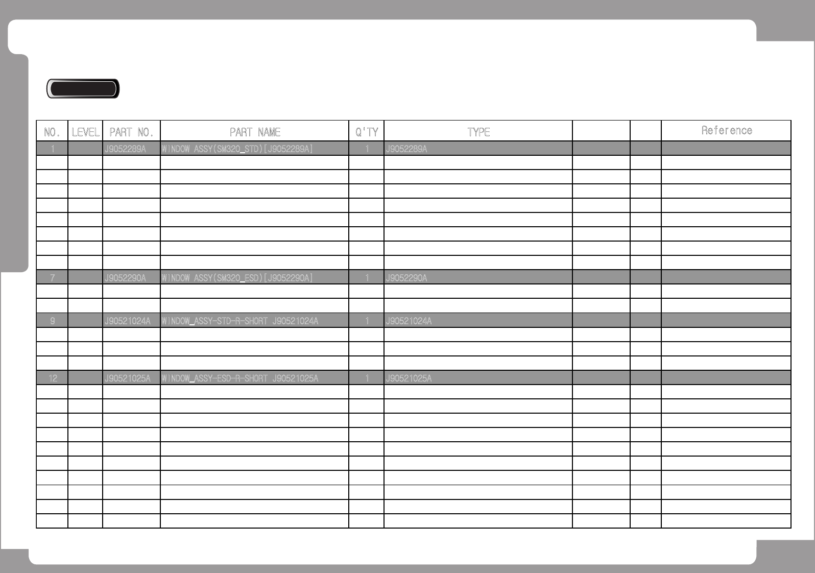 1 J9052289A WINDOW ASSY(SM320_STD)[J9052289A]