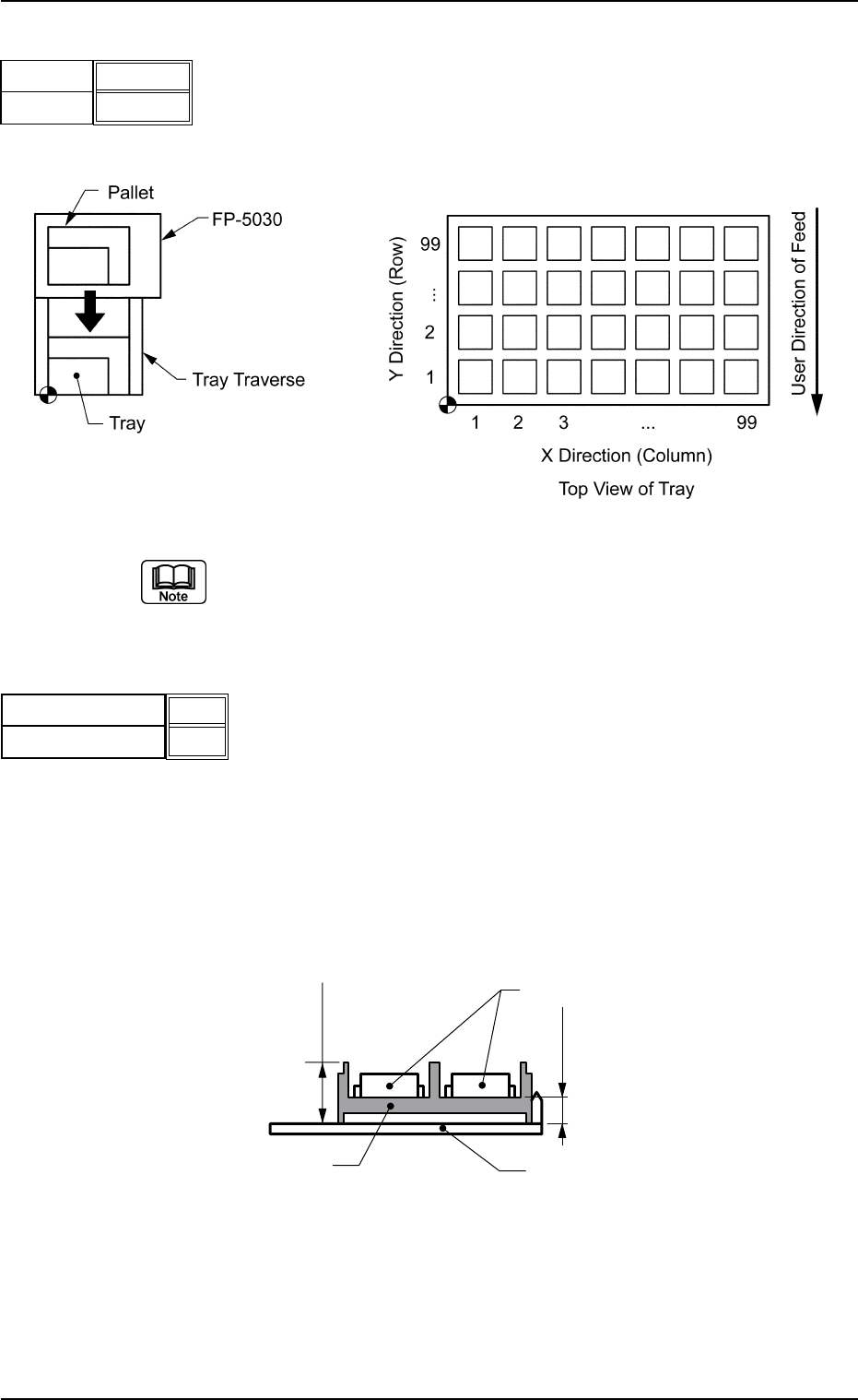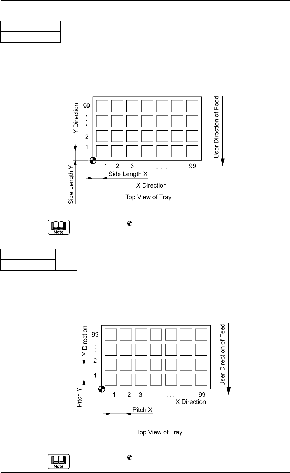 Set the dimensions X and Y between the tray origin and the center of