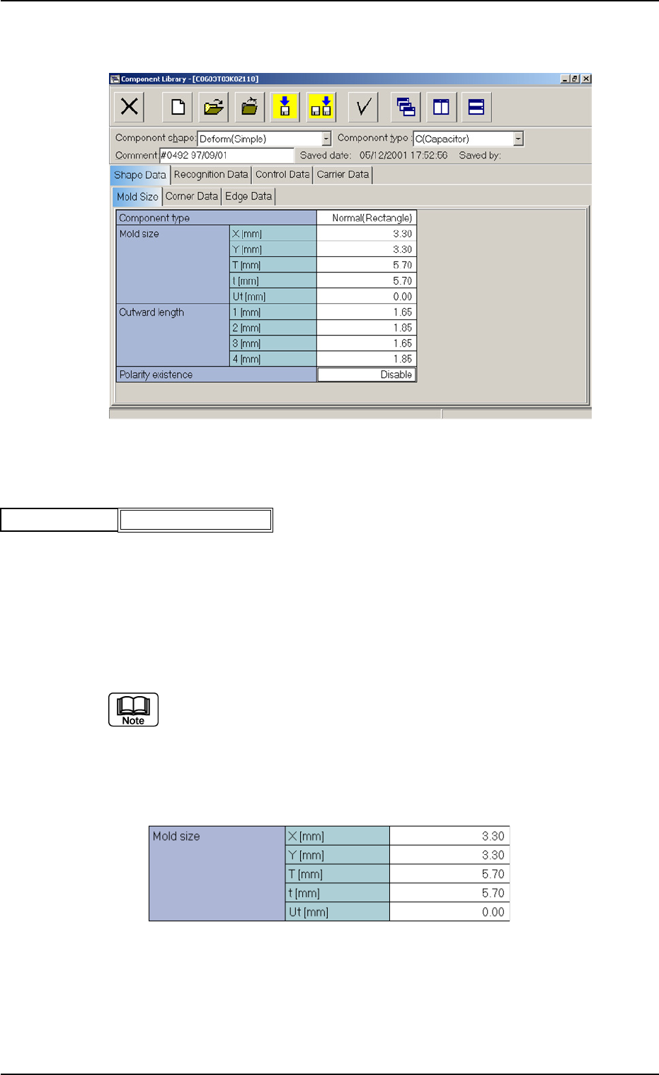(1) X [mm] and Y [mm] Set Dimensions X and Y of the molded section. Unit: mm Leadless Components T op View of Component Data Input Range: X: 0.01 to 150.00 Y : 0.01 to 150.00 Leaded Components T op View of Component Data…