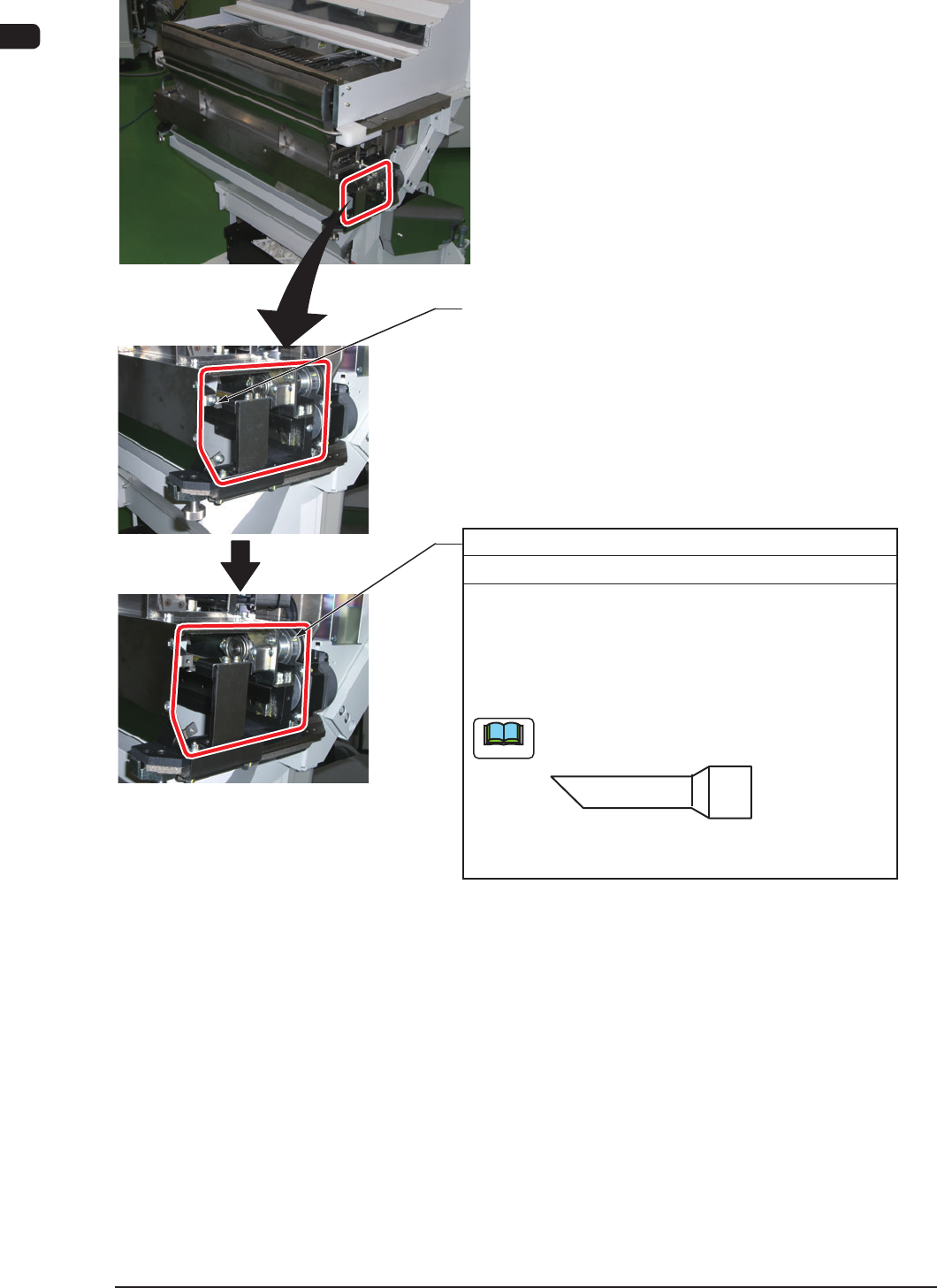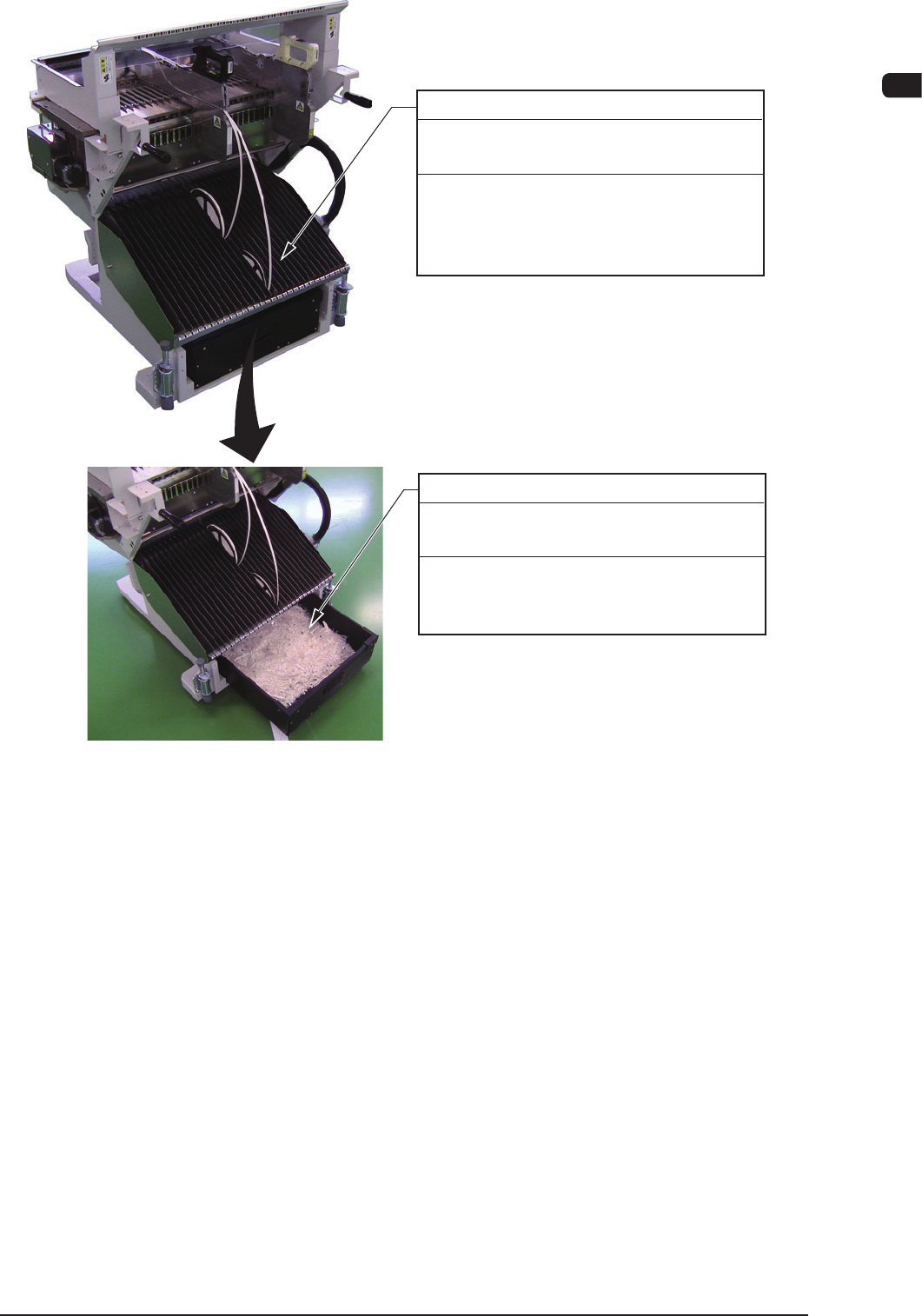 4OM-1610 1-25 3. Maintenance Spots : Chap.1 091 1-001 Scrap Box Every Day Cleaning Required T ime: 1 minute When the scrap box is filled with the tape with no components, draw the scrap box out and remove such tape. Reel…