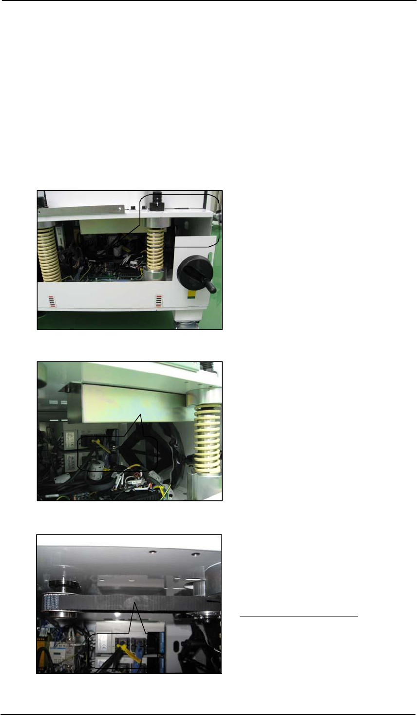 13.3 调整 T 轴皮带的张力 警告 ! 当伺服电源切断时,而跳过自锁的连 接器接上, T 轴会以很快的速度下 滑 . 通常,在接上跳过端子 之前,按下紧急按钮 1. 将 MTU-A 装到机器上,选择 [Manual Operation] – [Side 2 Unit Clamp] – START 夹上 MTU-A. 2. 用调过 T 轴自锁端子跳过 T 轴自 锁,将 T 轴降到负的机械停止位 3. 从 MTU-A 上拆下左下侧的盖子…