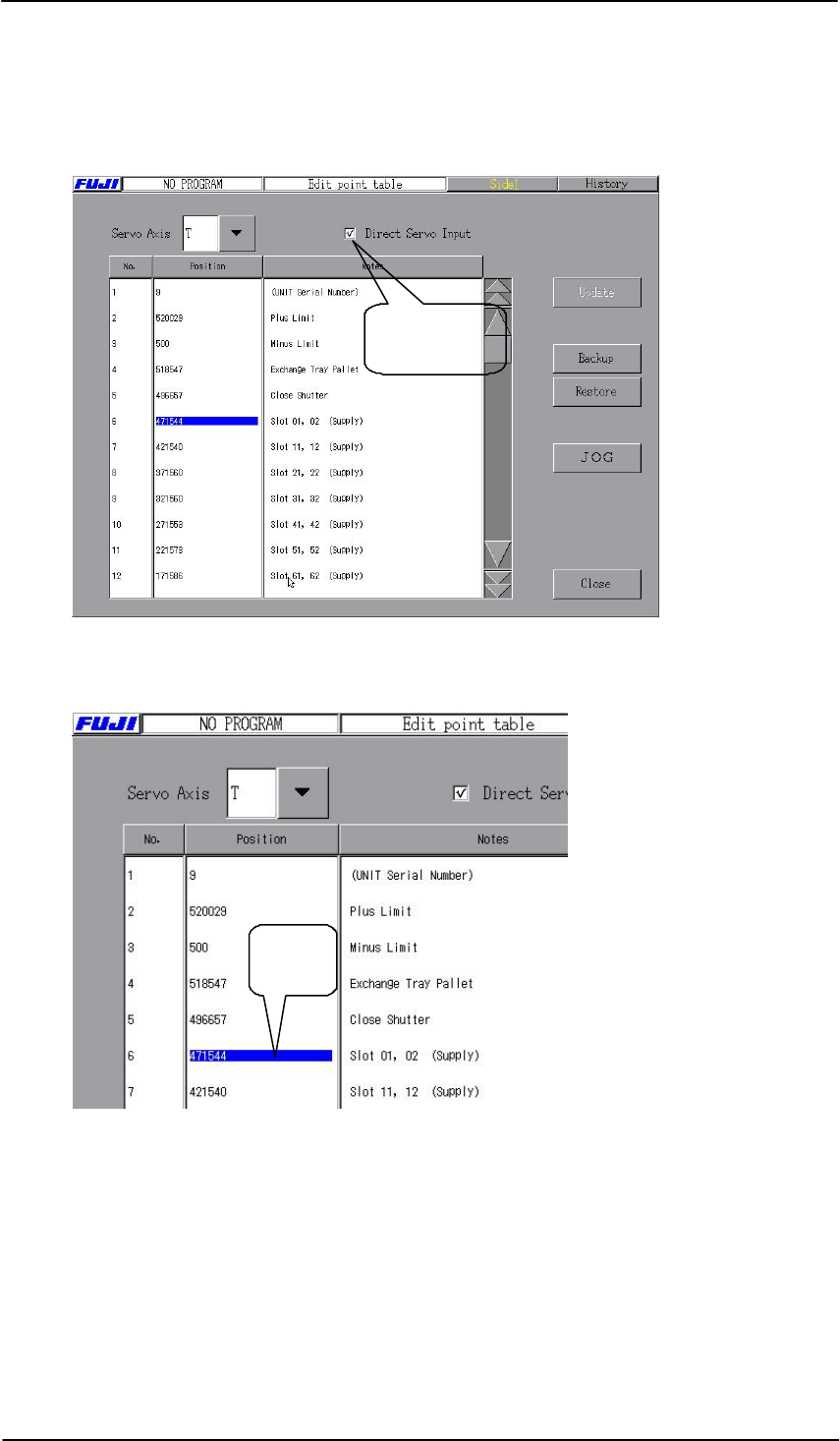 9. 从伺服轴中选择T轴,用[Direct Servo Input] 检查对话框