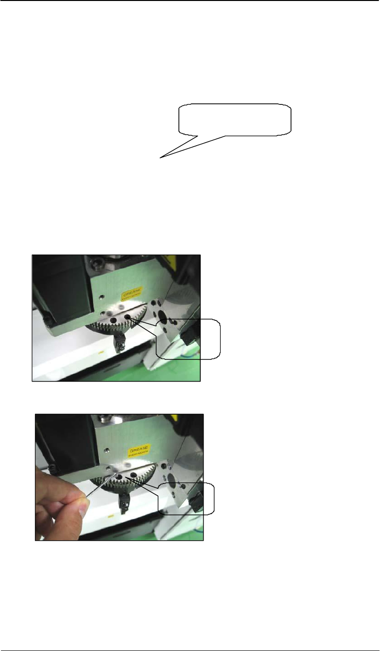 2. 同时旋转R和Q 轴,使R-axis齿轮上的两个孔和Q-axis齿轮上的两个hook安装螺栓对齐。