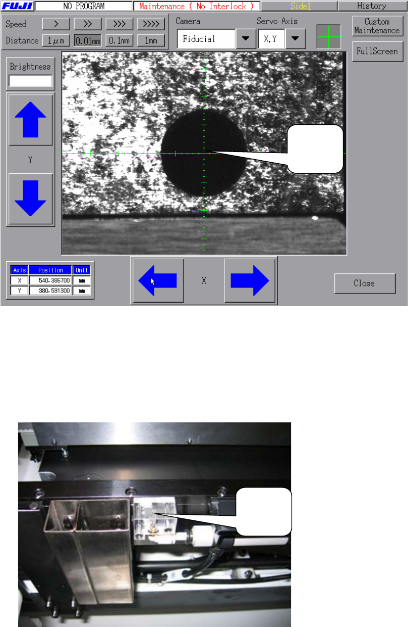 5. 移动 Mark 相机到铁板治具右手边的原点孔中心。