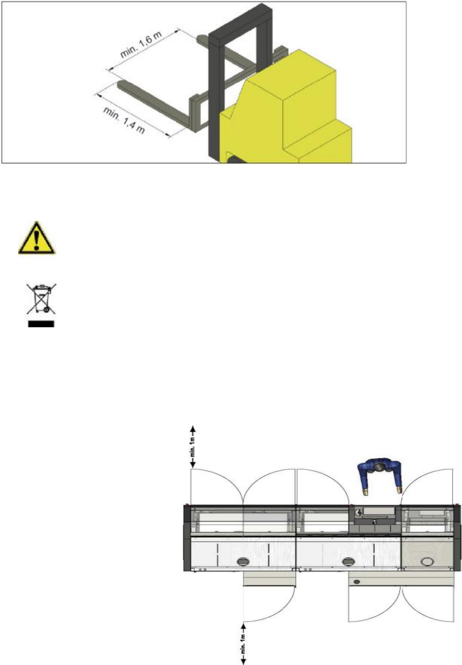 注意! 设备倾覆! 为防止设备倾斜,叉车托举点必须是设备重心的中间位置!