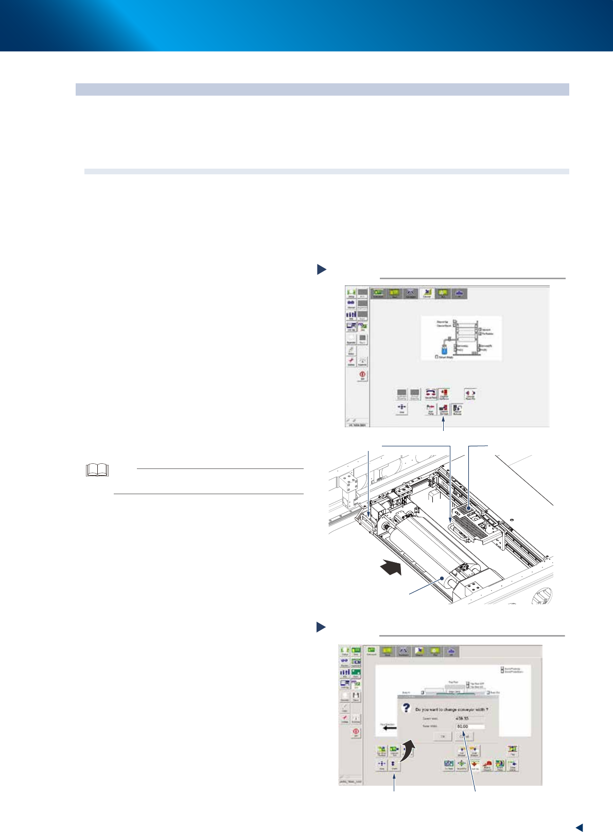 This section describes the way of cleaning and lubrication for the conveyor automatic width axes (W1-axis,