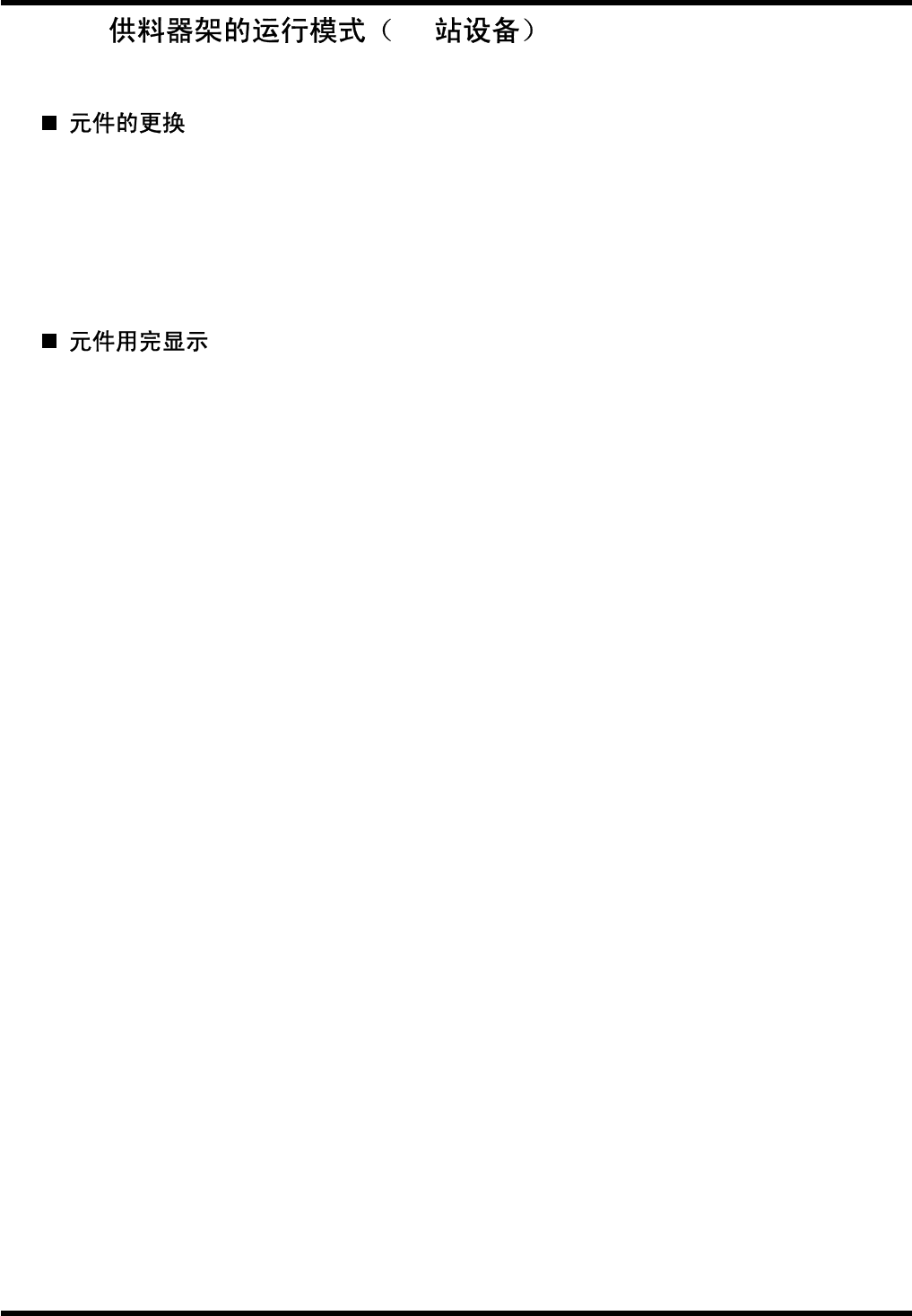 AVK3 操作手册 5.4 供料器料架的运行模式 5.4 .2 60 AVK3 60 Z 站只有一个运行模式,其中只有一个供料器架系统运行。 2. 1. 只有在用完时才能更换元件供料器上的元件。 2. 元件用完时,机器插件动作将会停止。 3. 当元件用完时供料器料架操纵盘上的“ PARTS EXCHANGE ” ( 元件更换 ) 指示灯会自动亮 起。 4. 元件更换后, 按供料器料架 操纵盘上的 “ PARTS EXCHANGE ” …
