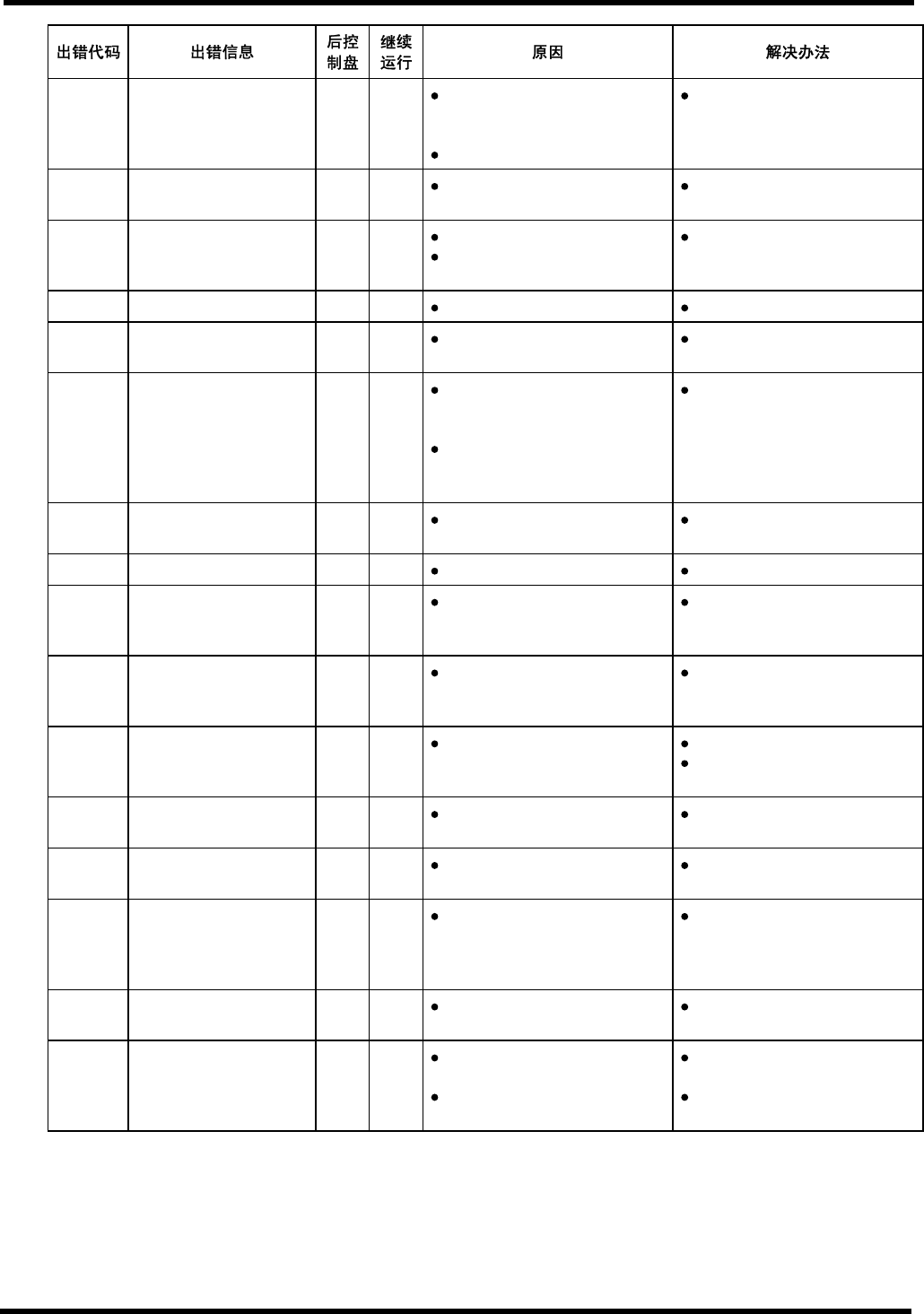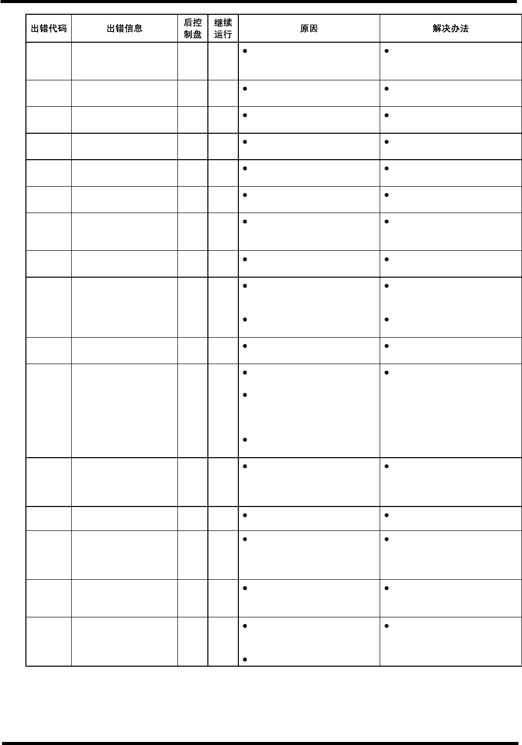 AVK3 操作手册 7.5 错误代码:与动作有关的错误( MC ) MC0400 元件用完报警 ON OK 剩余元件数量低于元件用完报警 设定数。 对发生元件用完报警的供料器, 进 行元件补充。 或者重置剩余元件数 量。 MC0410 跳线用完报警 ON OK 跳线所剩长度小于报警长度。 更换跳线或者根据剩余的元件重 新设定跳线长度。 MC0500 操作错误 ON NG 在“ MANU ” ( 手动 ) 模式下按了 “ START ” …