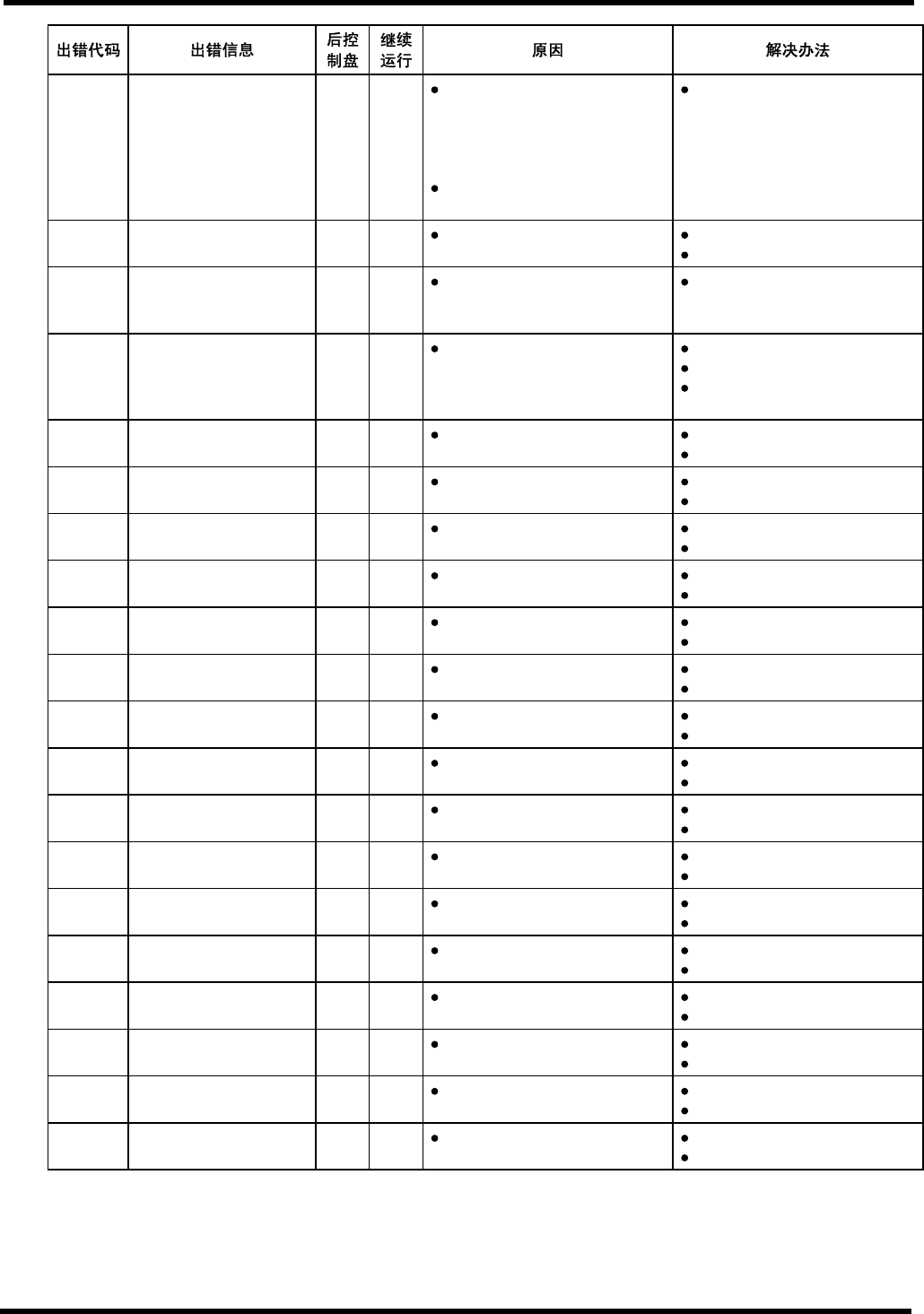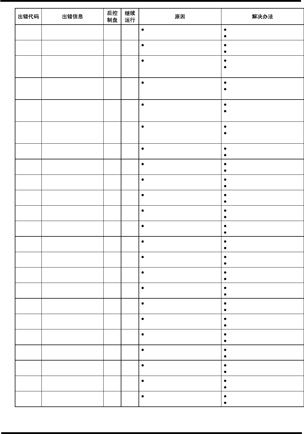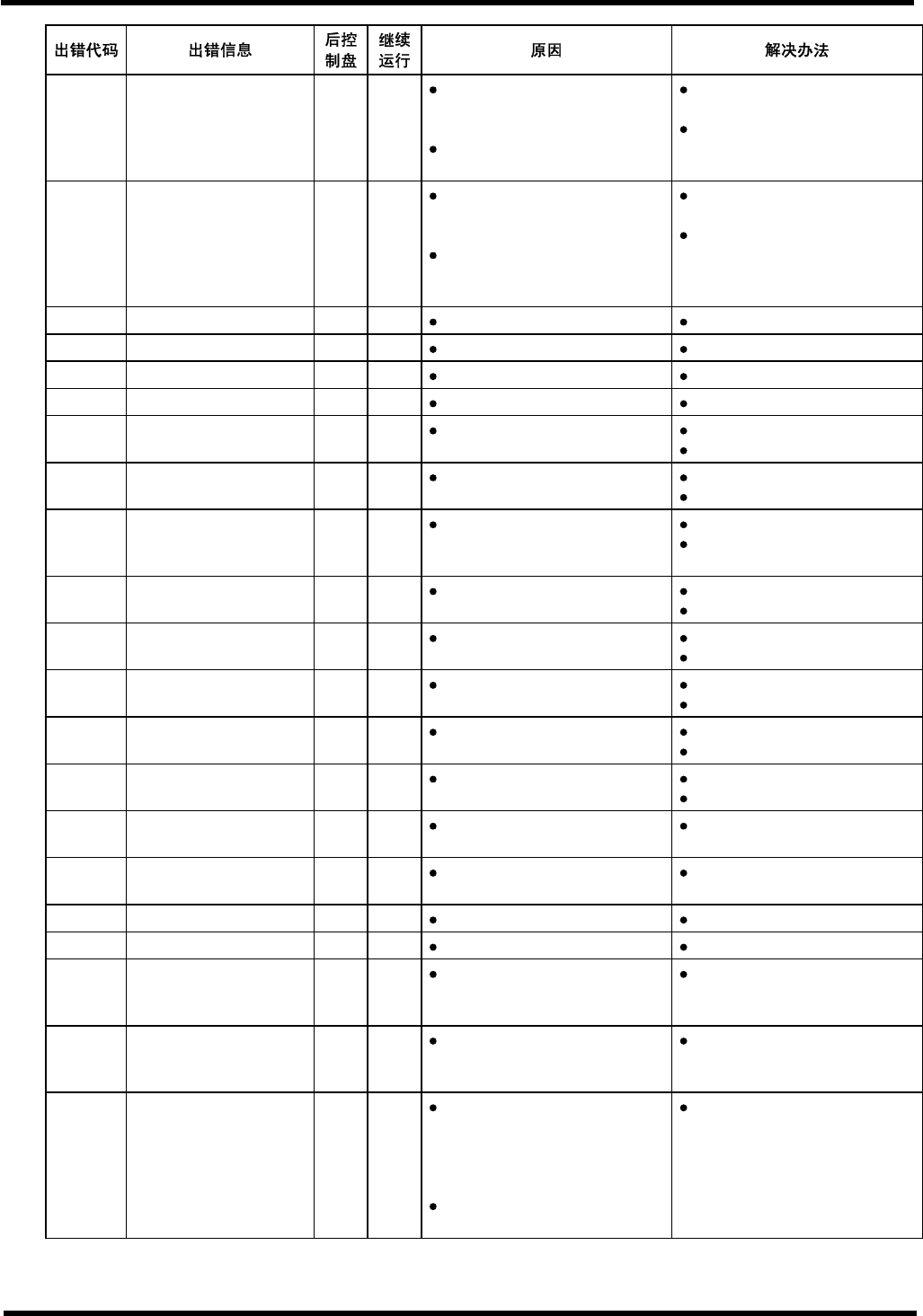 AVK3 操作手册 7.5 错误代码:与动作有关的错误( MC ) MC1101 Y 轴联锁 ON NG 当 Y 轴开始移动或者在起动点的 时候, 上料 器的返回极限 , 定位器 的返回极限和下料器的返回极限 没有被各自的感应器探测到。 ( M ) 在手动模式下,当 H 轴移离机器 原点的时候, Y 轴移动。 检查上料器返回极限传感器、 定位 器返回极限传感器和下料器返回 极限传感器和每个阀门。 MC1104 T 轴联锁 ON NG T…